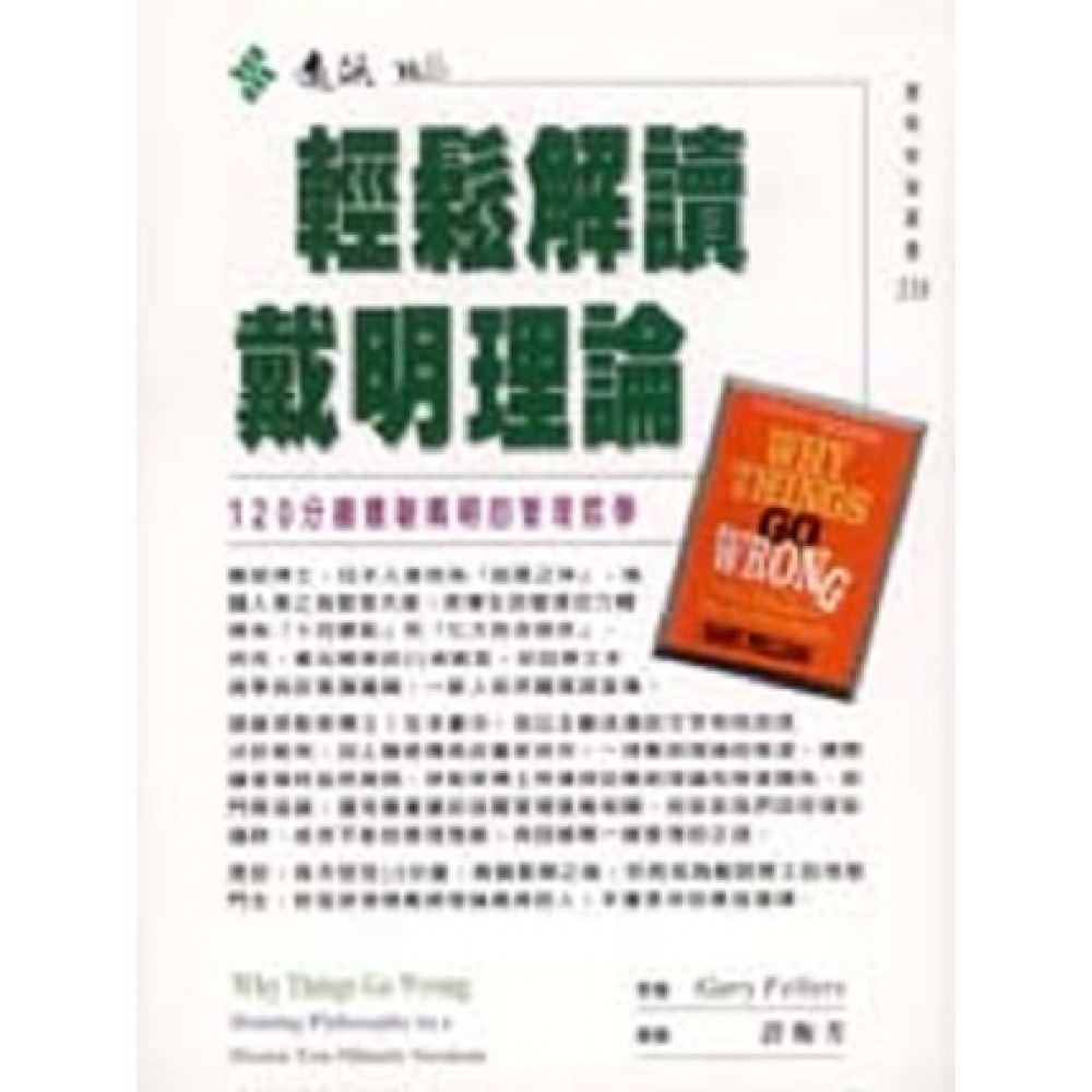 封面文案: 戴明博士,日本人尊他為「品質之神」,美國人奉之為管理大師,將畢生的管理功力精煉為「十四要點」和「七大致命惡疾」。然而,看似簡單的21條箴言,卻因博士本身學說的繁複龐雜,一般人依然難窺其堂奧。 感謝菲勒斯博士!在本書中,他以生動活潑的文字和恰如其分的範例,加上慧眼獨具的重新排列,一掃戴明理論的晦澀,讓閱讀者頓時豁然開朗。菲勒斯博士所傳授的戴明理論和勞資關係、部門間協調,還有最重要的品質管理息息相關。他告訴我們如何移除過時、成效不彰的管理殘骸,與回歸第一線管理的正途。 是