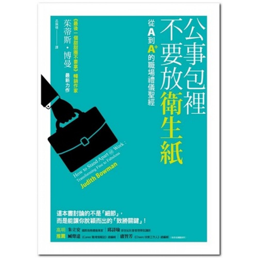 公事包裡到底要不要放衛生紙? 要是你說:當然會放啊!這還用問! 小心!你只是和職場上絕大多數的人差不多; 要是你說:看要怎麼放才高明,才有風範, 就是給了自己脫穎而出的美好機會! 許多年前,作者茱蒂斯.博曼在波士頓一間大型銀行與總裁開會。 出席這場會議是個機會,她知道這是個測試,而且會被人評價。 會議中,她穿著經典藏青色西裝、高級棉質白襯衫和絲質Brooks Brothers領帶、典雅的包鞋、小皮包。 她告訴自己……必須表現出專業的樣子,必須完美。 正當一切都準備就緒……。 博曼把公事包放在地上,但是忘了扣起來。 在緊湊的會議過程中,博曼坐在椅子上動了一下。公事包倒了,從 裡面滾出一大罐髮膠(當年還沒有小罐裝)。 那個大罐子一路滾到會議室地板的正中間。 她感覺真是丟‧臉‧死‧了! 博曼女士強烈提醒各位,請從她超級丟臉的經驗中學會教訓── 不要在公事包放個人或衛生用品, 除非你鎖得牢緊! 這本書討論的不是「細節」,而是能讓你脫穎而出的「致勝關鍵」! 只要比別人更高明一點,你就有脫穎而出的亮點。 這些情境都可能在你的事業生涯中出現,該怎麼做才是高明的做法? Q:只剩最後一張名片了,而且有點受損?要遞給客戶嗎? 一般做法:遞出名片的同時道歉,因為我可不想錯過好機會。 高明做法:名片代表我們的「人生」,用破損的名片倒不如沒有名片。向對方要名片,之後用個人信紙寄信給對方。 Q:如何在會議中回覆緊急的手機簡訊? 一般做法:在別人面前收發簡訊。沒辦法,這也是不得已的。 高明做法:只有在「雙方都同意」的情況下,才收發簡訊。得到別人完整的注意就像一份贈禮,一對一的專注是每次互動的基礎。 現在光把工作做好是不夠的,要在職場勝出,你必須做得高明、與眾不同。而且辦公室裡有許多你從來沒有注意到的細節,值得你下功夫。職場禮儀經典著作《最後一個甜甜圈不要拿》暢銷作家茱蒂斯‧博曼要在這本書中告訴你,如何掌握每個「關鍵細節」,做得高明、做得漂亮,讓「做得高明」內化成為一種心態、一種工作的狀態,進而感染他人。透過持續不斷的練習,最終您將能成為上司、同事、客戶眼中「值得認識」的人! 在本書中你可以知道: ‧「一般」做法與「高明」做法的差別 ‧真實發生過的職場小故事,別重蹈覆轍! ‧可立刻執行的行動步驟。 ‧即使透過,包括臉書、Line、Skype、視訊會議等各種科技通訊工具也能展現專業形象。 ‧有效掌握每個致勝細節,脫穎而出! 高明推薦 ‧朱立安 國際禮儀講師 ‧邱詩瑜 新世紀形象管理學院講師 ‧臧聲遠 《Career職場情報誌》總編輯 ‧盧智芳 《Cheers快樂工作人》總編輯 凡是握手、交換名片、目光接觸本書都有深入的解說與層級的比較,姿態、位置與時機的拿捏也多所著墨……有助讀者在工作場所中脫穎而出,更上一層樓!──朱立安 國際禮儀講師 本書不落傳統禮儀書的窠臼,……有許多相當創新獨到的實戰寶典,值得網路世代的各位細細品讀。──邱詩瑜 新世紀形象管理學院講師