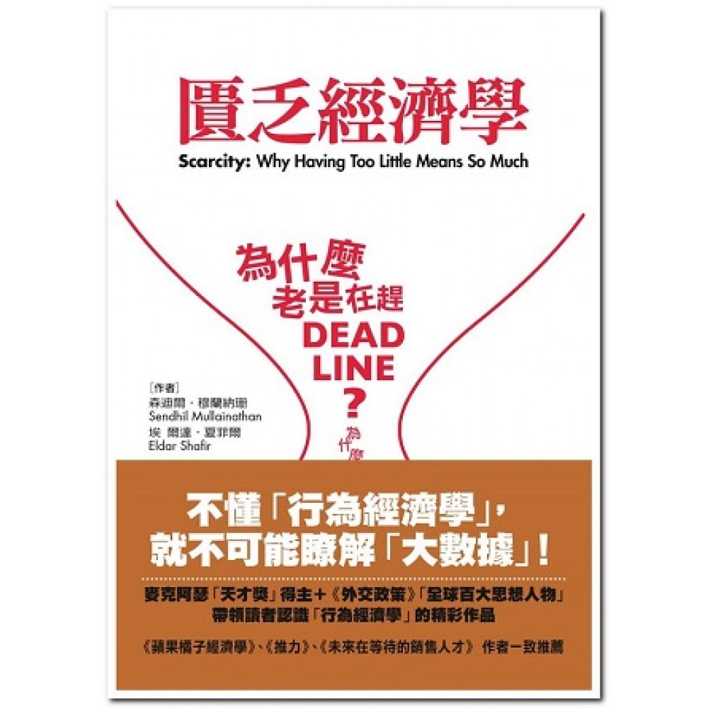 既然說螞蟻是忙碌的工人,為什麼還能每逢野餐必不缺席? --瑪麗.杜絲勒,奧斯卡金獎影后 我們寫作此書,因為我們忙到非寫不可。 森迪爾對著埃爾達發牢騷。他的待做事項已經塞爆了時間表。進度距離完成的期限 已經從「落後」階段發展到「極端嚴重落後」。會議不得不順勢重擬時程。電子郵箱裡該注意的訊息已多到滿出來。他可以想像媽媽老是接不到他電話的受傷表情。他的汽車行照已經過期。而且情況越變越糟。半年前擬定的國外研討會在當時似乎是個好主意,但如今看來卻未必。進度落後已經成了惡性循環。補登記汽車行照讓待做事項又多了一件。一個計劃案因為電子郵件延遲回覆而多走冤枉路;讓它重回正軌意味著更多的工作。生命中延遲未完成的事件堆積如山,已陷入崩塌的危機。 花時間哀嘆時間不夠,埃爾達已看出這其中的諷刺意味。但森迪爾似未完全領會,不為所動地描述他的脫身計劃。首先他決心力挽狂瀾。舊的承諾必須要履行,新承諾則可設法避免。他要對每個新的提案說不。對於舊的方案,他要確實進行以避免更進一步的延誤。到頭來,這個緊縮措施必將顯現成效。待做事項會縮小到可控管的程度。唯有到那個時候他才會再考慮新的案子。而且他的再出發也必然會更加謹慎。說「好」的情況會變少,而且事先會經過深思熟慮。這件事做起來不容易,卻是非做不可。 擬定計劃讓人感覺愉快。這是必然的。伏爾泰老早就說過:「幻覺乃至高之歡樂也。」 一個星期之後,森迪爾又打電話過來:兩個同事正準備出一本書討論低收入美國人的生活情況。他說:「這實在是個好機會,我們應該可以寫一章。」他的聲音,根據埃爾達的回想,完全聽不出有諷刺的意思。 不出預期,這一章「好到不應該放棄」,所以我們決定寫了。同樣不出所料,這又是一個錯誤,我們寫得匆匆忙忙而且進度延遲。不過沒有預期到的是,它是個有價值的錯誤,導出了一個意料之外的連結,最終出現這本書。底下是關於那一章我們背景筆記的摘要。 在克利夫蘭擔任行政經理的紹恩,一直苦於入不敷出。他有一堆遲繳的賬單。他的信用卡已經刷爆。花錢的速度快如流水。用他自己的話來說就是:「他要過的日子總比他的錢還多。」某一天,他因為高估了自己戶頭裡的錢,而讓一張支票跳了票;他忘了有一筆二十二美元的開銷。每通電話都讓他神經緊張:會不會又是另一個債主打來「問候」他?缺錢也影響了他的私人生活。有時吃飯,他付的錢比理當均攤的數額還少。雖然他的朋友能理解,但是感覺卻不大好。 而且情況沒有好轉的跡象。他原先貸款買了一台藍光錄放影機,前六個月無需繳款。 但這已經是五個月前的事。下個月他要怎樣支付這筆額外的賬單?他原本就需要拿越來越多的錢,去支付舊的債務。跳票的支票要付大筆的罰款。遲付的賬單代表更多滯納的罰款。他的財務狀況一團糟。他陷在債務的池子裡,已經落在深水區而且快浮不起來了。 和許多有類似狀況的人一樣,紹恩在財務上聽取了多方的意見,大家的建議非常相似。 不要越陷越深。別再借錢了。把你的花費降到最低。有些開支刪除掉也許不容易,但你還是要試著想辦法。儘快把舊債償清。等到沒有新債,你的開支會變得較容易管控。在這之後,仍要隨時警覺不要重蹈覆轍。要學會聰明花錢和借錢。要避免負擔不起的奢侈品。如果真的非借錢不可,要先想清楚把錢還清的代價。 對紹恩來說,這些建議的理論作用遠大於實際價值。抗拒誘惑不容易。抗拒所有的誘惑更是困難。有件他想了很久的真皮外套正在特價標售。隨著女兒生日逼近,省掉生日禮物的念頭越來越顯得不合情理。有太多的方法可以讓他花錢超出原先的計劃。紹恩最後又跌入債務的水潭裡。 我們很快發現森迪爾和紹恩兩人行為的相似之處。沒來得及在最後期限完成的工作就和過期遲繳的賬單一樣。重複約定的會議〈多花費原本不屬於自己的時間〉很像逾期付款的支票〈償付原本就不曾擁有的錢〉。你越是忙碌,你就更需要跟別人說「不」。你越是債務累累,你就越需要不去買東西。脫離困境的計劃聽起來很合理,但是卻很難落實。它需要持續的戒慎警覺--去決定哪些該去買或答應去做。一旦警覺心動搖--即使只是時間或金錢上最微小的誘惑--你就會陷得越深。紹恩最後被困在高築的債台裡。森迪爾最後則困在堆積如山的工作計劃中。 這種相似性讓人吃驚,畢竟兩邊的狀況很不一樣。我們通常認為時間管理和金錢管理是不同的問題。它們導致的後果也不同:不良的時間管理讓自己丟臉,或者導致工作表現不佳;不良的金錢管理則可能是更多的罰款或是被列為拒絕往來戶。它們文化上的指涉意涵也不同:進度落後錯過完成期限對一個忙碌的專業人員代表的意義,跟進度落後錯過繳付欠款期限對一個城市低收入的工作者的意義完全不同。他們環境背景不同,教育程度不同,甚至激發他們的動機也不同。不過,雖然有這些不同,表現出來的行為模式卻是極度相似。 森迪爾和紹恩確實有一個共同之處:他們都感受到匱乏帶來的效應。這裡的匱乏,我們指的是擁有的比你感覺所需的還要少。 森迪爾覺得自己被時間追著跑;他覺得自己的時間不夠做完必須做的事。紹恩覺得手頭拮据,錢不夠付清賬單。這種共同性能來否解釋他們的行為? 有沒有