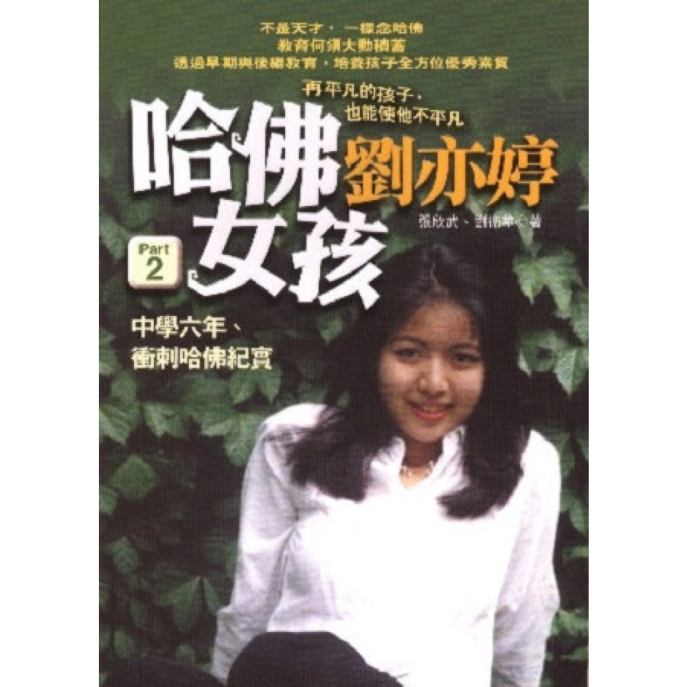 《哈佛女孩劉亦婷Part2中學六年、衝刺哈佛紀實》,從叛逆期(十二歲)談起,截至如何衝刺學業、獲得哈佛等四所明星大學全額獎學金止,並兼述及申請美國大學的方法(附錄)。 總括來說,本書適合家庭裡有小學高年級到高中孩子的家長及莘莘學子閱讀的書。書中除了父母教育孩子的經驗外,對於成長中孩子的學習態度與方法也提供了很多實用的建言。