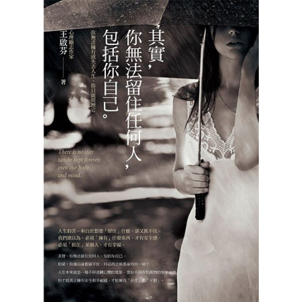 《其實,你無法留住任何人,包括你自己:你無法擁有或失去人生,你只能經歷它》 人生無常,很多無形的關係、有形的東西,看似絕對,其實意外地容易變卦或損壞,偏偏人又是脆弱的,很害怕變動或失去。 其實,人生有太多的留不住,留不住人,留不住事,也留不住人與人之間的牽繫,更留不住人心。萬事萬物有起有落、有生有滅,當我們面對外在有形有象事物的消亡,以及內在無形無象情緒的起伏,如果仍執意「擁有」、想去「留住」,不只是跟老天對抗,也是跟自己過不去。 世上沒有任何東西,是你能夠緊緊揣在手裡的,命裡有時終須有,命裡無時莫強求,不要執著過去的事情,也不要去渴求已經不存在的東西,更不必羨慕過往的自己,只有在當下,我們才能擁有變化的可能;也只有在當下,我們才能實踐自己想要的人生。 德國哲學家尼采曾經說過:「每個人都在永遠的『無』中漂流,不是嗎?」每個人都只是暫時住在此生和此身,外在的一切都會改變,沒有什麼東西是堅實永恆的。 當你學會用不強求的態度,去看待自己的人生,或許表面上看來一無所有,然而內心的豐盈與自在卻是源源不絕的。