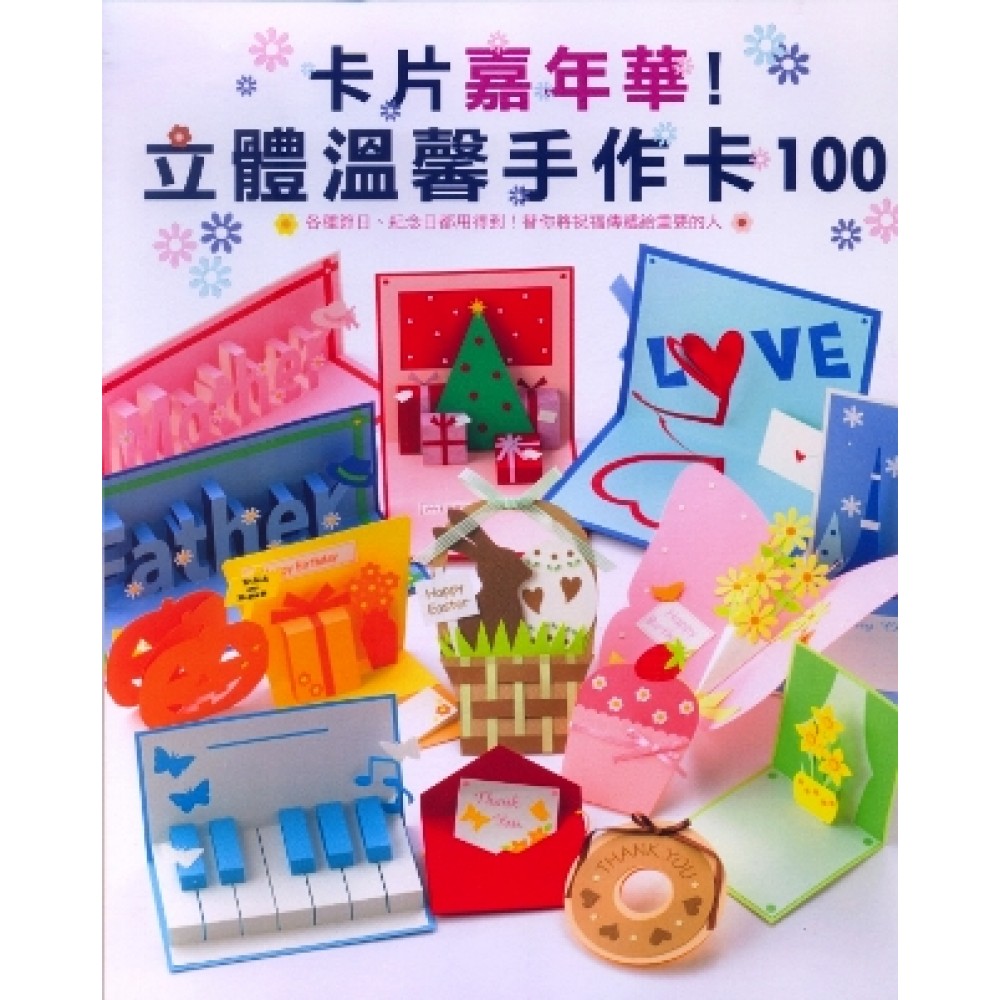 不花大錢,心意滿點! 貼心手工卡片,替你將祝福傳遞給重要的人~ 在高聳的聖誕樹旁堆著滿滿的禮物,窗外又飄著綿綿白雪,讓人彷彿置身快樂的聖誕夜;編織籃造型卡片,附上復活節必備的兔子與彩蛋,更添時髦。還能在籃子與彩蛋背面寫上貼心話語;情人節不好意思說出口的話,在卡片上做一個螺旋上升的大愛心,就這麼直接了當的表現心意吧! 活力十足、造型可愛的立體創意卡片,不但是各個節日的重要紀念,更是能夠傳達心意的貼心工具。一邊思考著對方喜歡的花、動物、顏色,一邊替他製作獨一無二,量身訂製的卡片,將生活中的回憶,以及朋友情人間的秘密暗號,全收納其中。 本書特色 1.夠簡單: 造型可愛不複雜,外加詳細解說以及原尺寸紙型,就算不擅長美工,也可以一次上手。 2.夠豐富: 包含節慶、紀念日以及多功能這三大類的卡片,共一百種設計,讓妳可以應付任何要做人情的狀況。 3.夠貼心: 本書附有技術指南、用具介紹,以及容易失敗的地方與改善建議,讓老手能夠了解自己的盲點、初學者上手更容易。