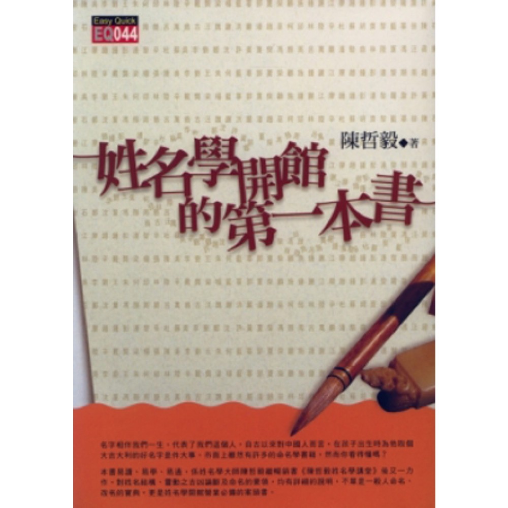 名字相伴我們一生,代表了我們這個人,自古以來對中國人而言,在孩子出生時為他取個大吉大利的好名字是件大事。市面上雖然有許多的命名學書籍,然而你看得懂嗎? 本書易讀、易學、易通,係姓名學大師陳哲毅繼暢銷書《陳哲毅姓名學講堂》後又一力作,對姓名結構、靈動之吉凶論斷及命名的要領,均有詳細的說明,不單是一般人命名、改名的寶典,更是姓名學開館營業必備的案頭書。 一般人對命名仍存有「迷信」的爭議與誤解,事實上,姓名學在人類歷史上是有其深遠的科學依據。良好而響亮的名字,可在健康、考試、求職、交友、配婚、合夥或事業財利等等問題,產生良好的能量反應,是一股強大的「助力」,絕不能等閒視之。