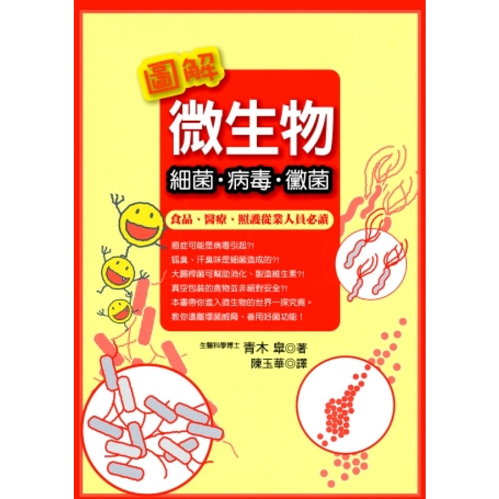 第1章 微生物是什麼樣的東西? 001 何謂黴菌?何謂細菌? 002 細菌.病毒.黴菌有何不同? 003 微生物的生活方式為何? 004 微生物在哪裡? 005 查明微生物的真實身分 006 把壞菌全部消滅就可以了嗎? 007 也有對人類有益的微生物 008 好菌與壞菌 專欄1:祇園祭與微生物的深厚淵源 第2章 日常生活中的微生物 009 何謂微生物與人類生活的接觸點? 010 為什麼洗手與漱口非常重要? 011 消毒藥或抗菌商品可以讓人放心嗎? 012 食物中毒都是微生物的錯嗎? 013 「腐壞」與「發酵」有什麼不同? 014 乳酸菌為什麼對人體有益? 015 游泳池和溫泉的水很髒,而我很乾淨? 016 檢查海水浴場的目的為何? 017 和寵物一起生活會感染微生物嗎? 018 最近廣受討論的病毒的真面目 專欄2:納豆真的是腐壞的大豆? 第3章 食品衛生.飲食生活與微生物 019 為什麼會發生食物中毒?(一) 020 為什麼會發生食物中毒?(二) 021 為什麼會發生食物中毒?(三) 022 「沒有怪味的」食物就安全嗎? 023 能夠令人安心的飲食店需具備什麼條件? 024 能夠令人安心的食品工廠需具備什麼條件? 025 何謂HACCP、ISO22000? 026 令人安心的料理人具備哪些條件?~金黃色葡萄球菌 027 魚用烤的就絕對可以放心 ~腸炎弧菌 028 蛋汁淋飯很危險?~腸道沙門氏桿菌 029 真空包裝、瓶裝就很完美?~肉毒桿菌 030 沒有吃生蠔,為什麼會感染諾羅病毒? 031 O157是什麼? 032 弧形桿菌是什麼? 033 令人安心的家庭料理與便當的製作秘訣為何? 034 真的有「吃什麼都不會有事」的人? 專欄3:要當心隔夜的炒飯、通心麵、湯、咖哩! 第4章 醫療(疾病)與微生物 035 何謂感染? 036 新感染症法 037 為什麼會發生感染? 038 有效防止感染的對策 039 何謂院內感染?(一) 040 何謂院內感染?(二) 041 何謂到宅看護感染與到宅照護感染? 042 抗生素與消毒藥會製造出耐性菌? 043 何謂MRSA? 044 人體常在菌都在哪裡做些什麼事? 045 何謂免疫? 046 胃潰瘍的原因為幽門螺旋桿菌? 047 現代仍舊有結核病及性感染症流行? 048 皮膚異常是什麼菌搞的鬼? 049 有會造成癌症的病毒嗎? 050 流行性感冒等的因應對策? 051 SARS很可怕? 052 肝炎也是病毒造成的? 053 關於HIV的正確知識 054 黴菌也會讓人生病嗎? 055 何謂BSE.普里昂疾病? 056 預防接種有效嗎? 057 什麼樣的醫院可稱為好醫院? 058 探病者.陪同看診者.義工的注意事項 專欄4:流行性感冒是「來自天界的影響力」 第5章 環境與微生物 059 土壤裡有哪些微生物? 060 有機農業與微生物的關係 061 河川及大海裡有哪些微生物菌? 062 微生物有助於水的淨化 063 微生物如何被運送? 064 地球暖化讓微生物產生什麼變化? 065 鄉村與都市的微生物不同嗎? 066 要如何預防家庭內產生黴菌? 067 何謂屋塵? 068 蟑螂及蒼蠅會搬運微生物 069 不要隨便靠近鴿子及狐狸 070 災害發生後的感染症對策 專欄5:細菌的分類 第6章 清潔與微生物 071 日本人愛乾淨嗎? 072 何謂「垃圾」? 073 正確的清掃方法為何? 074 何謂清潔的品質管理? 專欄6:吞下幽門螺旋桿菌而獲得諾貝爾獎 第7章 衛生習慣與微生物 075 何謂衛生? 076 上廁所後,要如何洗手? 077 何謂「生活洗手」與「衛生學洗手」? 078 在食品相關職場要在什麼時候洗手? 079 在食品相關職場需要注意的衛生管理 080 醫療.照護相關人員需要注意的衛生管理 專欄7:對於令人擔心的海外感染症,要積極活用檢疫所 第8章 美容.健康與微生物 081 看糞便形狀就可以了解健康狀態 082 「肌膚狀況不佳」和微生物有關係? 083 用力刷洗、泡澡時間長為美膚之敵? 084 汗臭是微生物造成的? 085 青春痘和異位性皮膚炎都是菌造成的? 專欄08:HIV、SARS病毒的起源? 第9章 微生物的控制與利用 086 殺菌.消毒.除菌.抗菌有何不同? 087 正確的消毒藥使用方法? 088 何謂不使用消毒藥的消毒? 089 家庭內的安全消毒法? 090 醫院對的感染症對策的基本觀念為何? 091 什麼樣的設備符合預防感染的要求? 092 如何控制病毒? 093 不會結露的建築物就不會有黴菌嗎? 094 醫療現場如何利用微生物? 095 何謂生物科技? 專欄09:你有沒有用保特瓶及水壺在培養菌呢? 第10章 與微生物和平相處的方法 096 如何和看不見的微生物相處? 097 何謂「無藥劑」? 098 如何處理「菌的運送者」? 099 在日常生活中利用微生物保護身體? 100 與微生物共存,實現安全與安心 專欄10:注意!馬鈴薯會引起食物中毒