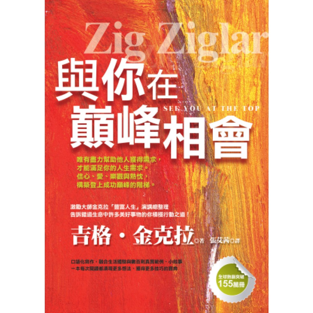 吉格•金克拉(Zig Ziglar) 1926年生。「金克拉公司」總裁,最大目標是幫助更多人充分發揮體能、腦力及精神資源。全世界數百家公司利用他的著作、教學錄影帶、錄音帶及訓練課程來訓練員工。金克拉也是全美最受歡迎、最能激勵人心的演說家之一,他經常巡迴各地,將充滿幽默、希望及熱忱的訊息傳遞給世界各國的聽眾。他擁有多部暢銷全球的作品,包括《登峰造極》、《金克拉銷售大法》、《幸福力》等(以上皆由世潮出版)。