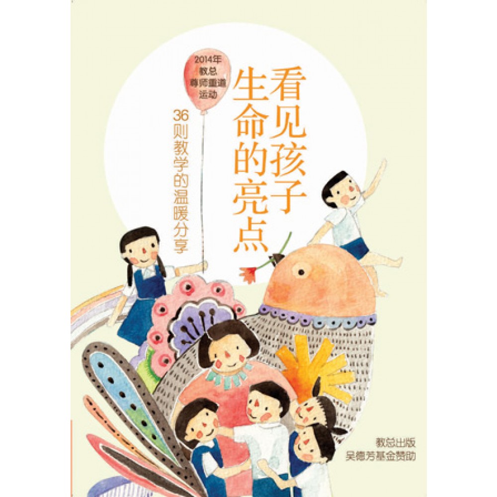 前言 播种希望•耕耘幸福 ◎教总尊师重道运动工委会 秉持着推广正确的教育理念,教总长期以来出版各类书刊,包括《孩子》双月刊、台湾苏明进老师著作《希望教室》系列以及其他系列教育丛书等等。 唯独缺乏一本属于马来西亚教师的教学分享作品。 今年,配合2009年以来推动的尊师重道运动,我们首次举办了“点亮孩子心中的那一盏灯”教师征文活动,鼓励教师创作。希望透过这次的征文活动,收集更多有关教师在教学上与学生互动的故事,以出版一本属于马来西亚教师教学体验的作品集,分享教学上的心得和喜悦。 由于首次举办教师征文活动,对于老师们是否愿意投稿分享,我们难免会有几分的担忧,结果反应还不错,让我们感到鼓舞。 这些稿件有来自全国各地中小学在职以及退休教师、校长的温暖分享,也有师范学院华文讲师以及教育部华校督学的真情感言。撰写的内容范围甚广,从办校理念、行政管理、教学分享到教学感想等等。 经过大家的反复思考和讨论,最后我们决定以“教师在教学上与学生互动的故事”作为选辑文章的指标,从中选出相关文章,并一一做了审校和润饰。 这本书内容共分为六个章节: <陪你长大> <你的心声,我听见了><爱在生命中流转><我把教学变有趣了><你很特别><孩子,谢谢你>,其中有师生温馨互动、老师的自我省思、学生的转变、创意教学的分享等等文章。 书末则以黄祯玉老师的《就让孩子那样充沛地活着》作为总结,和大家分享教育工作者需要做出怎样的努力,才能让孩子欢喜学习、快乐成长。 在无数教书育人的故事背后,需要有一位领航人坚守前方,守护学校、支持老师和引导孩子。因此,我们特别附录一位微型华小校长的分享——董荣山校长的《从心出发,用爱照亮微小》,和大家分享他如何在各个方面都缺乏和不足的情况下,重整和改革校务,让学校稳健成长。 希望读者可从这本书感受到老师对孩子的关爱和无私付出的精神,进而对老师保持尊敬和感恩之心。 我们也希望这些温暖人心的分享,能对老师们有所启发。老师为孩子带来的影响力和力量,是无远弗届的。一旦老师发掘孩子心中的光,给予他们鼓舞和支持,就能让孩子的潜能大大发光。 因此,我们将书名定为《看见孩子生命的亮点——36则教学的温暖分享》。 《看见孩子生命的亮点》能够付梓出版,是结合了大家的力量。 至诚感谢吴德芳基金,不但长期给予教总大力的支持与协助,这一次更是盛情赞助马币1万元,作为这本书的部分出版费用。 我们也衷心感谢《看见孩子生命的亮点》每一位作者的真情分享,成就了这本书的出版。希望这本书能够给予大家在教学上的另一种鼓励。 对于文章未被选录的老师,我们更是致以万二分的谢意。平时忙碌于教学和行政作业的老师,愿意提起笔,逐字逐句地将感想化为文字,真挚的情感,让我们感动不已。 在教育路上播种希望,耕耘幸福,并不仅仅是一个梦想而已,更是需要我们共同努力去创造和实现!让我们继续绽放爱和热情,点燃孩子的心灯,照亮孩子,也照亮自己!