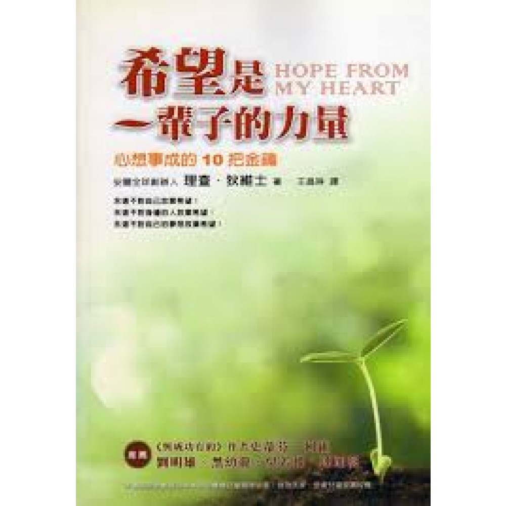 書中分享強而有力的人生教誨、關鍵轉折時刻,以及個人頓悟, 在在邀請我們去重新檢視這份我們稱為『人生』的珍貴禮物。 ──暢銷書《與成功有約》作家史蒂芬.柯維 這真是一本感人的書,作者狄維士先生多年前參加過卡內基訓練。他所強調的自信、積極、尊重,也正是卡內基的精神。 ──黑幼龍 永遠不要放棄希望! 這是理查.狄維士以七十幾年的人生體驗與處世智慧, 所給我們最簡單、也最重要的提醒,祝福你,美夢成真。 ──吳若權