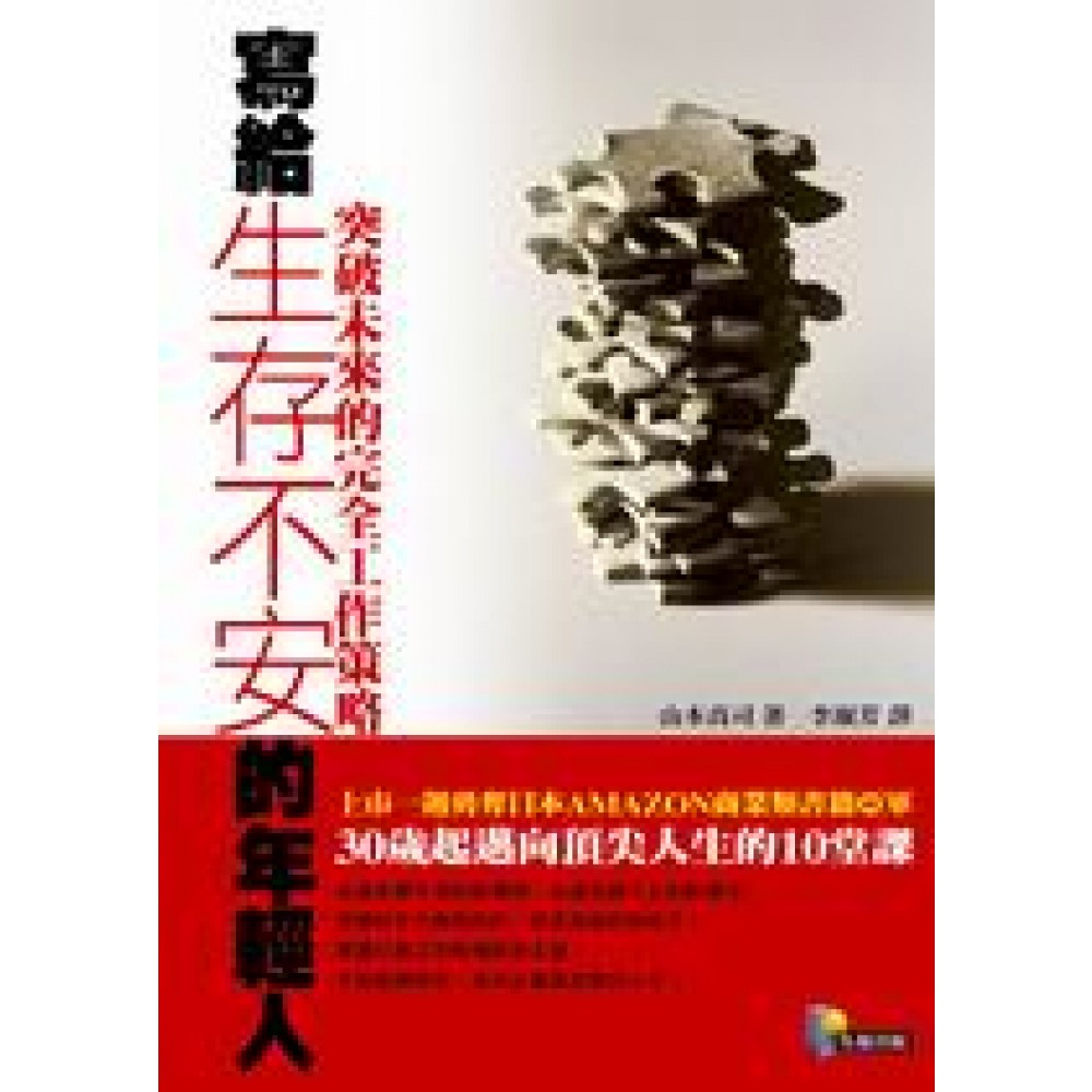 寫給生存不安的年輕人──突破未來的完全工作策略 山本真司 著 李淑芳 譯 30歲起邁向頂尖人生的10堂課 永遠有學不完的新事物,永遠有趕不上的新潮流。 準備好全力衝刺的你,該是取捨的時候了! 掌握住真正的職場經營之道,才能脫穎而出,成為企業最想要的人才。 寫給生存不安的年輕人──突破未來的完全工作策略 在生存不安的年代,你需要的不是名牌奢侈品般的學歷,而是別人無法取代的實力。 看到新聞媒體上報導各國企業的大起大落,讓年輕人無不對自己的前途憂心忡忡。拿MBA學位、考證照、修讀商管課程……儼然成了一種全民運動。然而,學海無涯,時間有限,不採取「捨棄策略」,你可能會忙得焦頭爛額,卻一事無成。 光是擁有MBA學位,已經無法創造「差別化」!讓闖蕩商場15年的老先覺,教導對未來不知所措的你創造自我戰略,在企業中脫穎而出,成為未來的領導人! 2大策略打敗生存不安魔咒 僵化是成長的大敵,為你的心靈與頭腦做一次全盤大掃除! 策略1:差別化策略*找出感興趣的領域,不求全知全能,但求一枝獨秀。 策略2:捨棄策略*為人所不為,學會跟世界唱反調。 30分鐘搞定MBA課程 以最短的時間、最高的效率、最精準的原則,重點式掌握MBA精華 (1)*6分鐘就能理解的logical thinking(邏輯思考) (2)*6分鐘就能理解的investment(投資理論) (3)*6分鐘就能理解的finance(財務理論) (4)*6分鐘就能理解的marketing(市場行銷) (5)*6分鐘就能理解的corporate strategy(企業策略) 戰勝成長恐懼的10堂課 第1堂課:撰寫一套獨門教戰守則 第6堂課:不要追逐時間、金錢、人脈 第2堂課:迎戰知識大眾化時代 第7堂課:擺脫你的MBA情結 第3堂課:把目標放在學習前面 第8堂課:理論與感情雙管齊下 第4堂課:看整體,不看局部 第9堂課:在野心與無欲間取得平衡的心靈管理 第5堂課:越專注,越有效率 第10堂課:追求理想,更要快樂