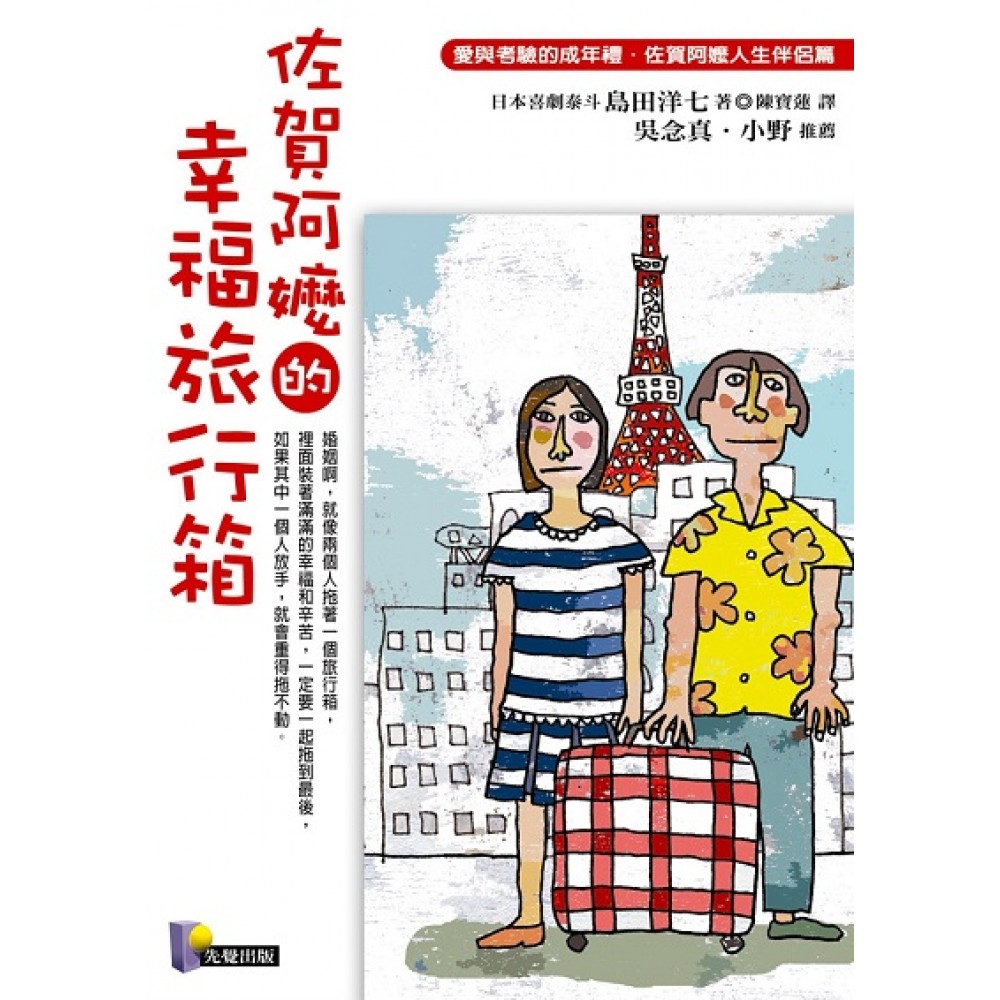 《佐賀阿嬤的幸福旅行箱》 愛與考驗的成年禮.佐賀阿嬤系列人生伴侶篇 佐賀阿嬤的 幸福旅行箱 「婚姻啊,就像兩個人拖著一個旅行箱,裡面裝著滿滿的幸福和辛苦,一定要一起拖到最後,如果其中一個人放手,就會重得拖不動。」 日本喜劇泰斗 島田洋七 著 陳寶蓮 譯 吳念真.小野推薦 不會吧,阿嬤原來只是開玩笑?! 我們決定隔天晚上離開佐賀。 我想跟外婆告別,而且也想把我選擇的小律介紹給外婆。 「哦,律子,昭廣就拜託妳囉。」 初次見面,外婆就向小律鞠躬,她窘得不知所措,害羞地點頭說「是」。 接著,外婆轉向我。 「昭廣,往東走,到東邊去,東邊的日薪高,你沒有學歷,就往東去吧。」 每天早上把報紙從頭看到尾的外婆,很清楚日本的經濟狀況。 可是,在心愛的女友面前嫌我沒有學歷,我忍不住想反駁。 「阿嬤,我小時候妳不是說『老是讀書會變成怪癖』嗎?」 「就算變成怪癖也好啊,哈哈哈。」 我不以為然,繼續辯白。 「可是,我說不會英文,妳叫我在答案卷上寫『我是日本人』; 我說不會寫漢字,妳叫我寫『我可以靠平假名和片假名活下去』; 我說討厭歷史,妳又叫我寫『我不拘泥於過去』。」 我抱著「看妳還能怎麼掰」的心情等答案,可是外婆卻說: 「昭廣,你都當真啦?」 「啊?」 「你讀高中時也不看書?」 「嗯。」 「你這孩子真傻!」 我和外婆還有小律,三個人放聲大笑。 貧窮夫妻百事High,再艱苦也要牽手笑著過。 阿嬤有交代,婚姻幸福的祕訣,就是永不放手。 這只幸福旅行箱,一定要一起拖到最後! 長大後的昭廣回到佐賀,與未來老婆的命運邂逅 ◎小律給昭廣的第一封情書…… 我們坐上電車。才剛坐下,她就給我一個信封。 「你看一下!」 我打開信封,裡面是一張摺疊的信紙。 「我們要一直在一起哦! 不論搭火車、坐輪船、上坡、下坡,或是等交通號誌時。 律子」 我訝異地看著她,她靦腆地笑笑。 這是不說甜言蜜語、以女孩子來說個性太過直率的小律,給我的第一封情書。 我眼頭發熱。 ◎日子難過時,昭廣與律子互相打氣…… 有一天,老婆對我說: 「老公,我們要永遠過這種日子嗎?」 「妳千萬別認為我們是在過窮日子,我們是在模仿窮人家的生活!」 我說完,老婆哈哈大笑。 「說相聲的果然會說話。」 這個問題暫時作罷。可是幾個月後,她又冒出這句話: 「欸,我們模仿窮人家的生活,時間也太久了吧!」 「啊?」 「模仿秀頂多只有兩、三天吧!」 「也是,那妳想怎樣?」 我無奈地問,她喜孜孜地說: 「這次來玩模仿有錢人的遊戲。」 嗯,她這麼說,我也躍躍欲試。 結果……一場人生大驚奇就此展開……