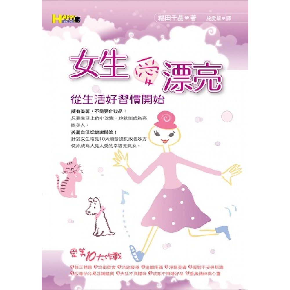 讓妳更漂亮的生活習慣! 79則女生常見的煩惱或症狀,提出在生活中自我療法的改善建議。 教妳如何維護自己的身心狀態,每天快快樂樂地過日子,成為人見人愛的幸福元氣女。 疲累、怕冷、疼痛、經前症候群、婦女病、體態、腸子、肌膚、汗水、味道、精神、心靈……,羅列各種針對女性的煩惱&症狀,有效解決困擾的79則處方箋。 針對可能影響身體健康的不良生活習慣,提出有效的改善方法。全書共分十篇,每篇會先列出一張改善生活習慣的計畫表,讀者可依此表逐步戒掉不良習慣,也可藉此預防癌症、糖尿病及心血管病變等疾病。