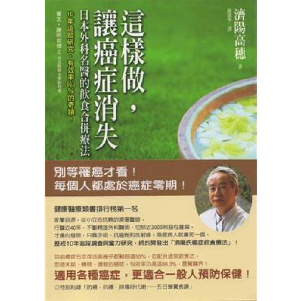前言 治療癌症,是我人生的最大目標 我年輕時就立志成為治療癌症的醫師,並且義無反顧選擇了「消化系外科」這條路。原因是,有三分之一的日本人死於「癌症」,而所有的疾病中,又有一半的病症發生在消化器官,其中癌症尤其如此。 當時的觀念認為,癌症必須動手術切除治療,消化系外科因而成為治療癌症的首要科別,也促使我投身其中。 在擔任消化系外科醫師數十年的過程中,我進行了無數次手術。西元兩千年,剛好我執業滿三十年,執刀的手術已經累積高達四千台,其中有一半是消化器官相關癌症的手術。 當時我深信,自己必須不斷提升開刀的技術,精確地切除更多癌症患者的病灶。這就是我對自己的人生目標—治療癌症,所能做的最大貢獻。 不過,那一年之後,我開始對這樣的想法產生了疑問,我開始質疑:只仰賴現代醫學治療癌症的三大療法:手術、抗癌劑、放射線治療,在效能上是不是已經走到了極限? 我一直懷抱著這樣的疑慮,直到一份二○○二年進行的癌症患者追蹤調查報告敲醒了我,也改變了我的信念。 驅策自己,再怎樣都要提升癌症治癒率 對於手術後的患者進行追蹤調查,是外科醫師客觀了解個人手術成果的重要指標,所以二○○二年,我調查了自己和後進醫師執刀的一四○六個消化器官癌病例。 報告結果顯示,患者的五年生存率,就是接受手術之後五年依然生存的比例,只有五二%。也就是說,即使手術成功,依然有四八%的人在五年之內復發身亡。 這個結果使我驚愕而心痛。 一般來說,癌症治癒率是以五年生存率作基準,這個比率大約都只有五成,也就是即使動了手術,一半的人仍然過世了。既然這樣,到底為什麼要動手術呢?從此我不斷驅策自己,一定要設法提升治癒率。 可是,該怎麼做才好呢?一份從一九九四年開始備受關注的「癌症與飲食」的相關報告,抓住了我的視線。 當時有些癌症患者,由於蔓延太快無法完整地進行手術,只能在部分癌細胞殘留體內的情況下回家休養,其中出現了少數「特殊病例」。這些特例患者明明體內留有癌細胞,但是之後的定期檢查結果卻顯示病況日益好轉,人看起來也更加健康了。影像診斷顯示癌細胞逐漸縮小,甚至也有完全消失的例子。 這些人的共通點,就是回家靜養之後,採用了「徹底的飲食療法」。雖然每個人的療法有些微差異,但是同樣都攝取了以蔬菜為主的蔬食,並且限制肉食、動物性脂肪和鹽分的攝取等等。 我看出這正是提升治癒率的重要方向,便開始認真地研究癌症的飲食療法(營養.代謝療法)。 我讀遍國內外相關文獻,效法這個領域的先進們的做法,漸進式的在癌症治療中納入飲食療法,實際經歷了各式各樣的病例,才確立了「對癌症有療效的飲食方針」。 自從開始進行飲食指導之後,我驚嘆連連的發現,「改變飲食,竟然可以抑制癌細胞到這種程度」!至今,這樣的驚喜仍然不斷。 相關細節我會在第四章說明。癌症飲食療法的主要重點是:大量攝取蔬菜和水果,限制動物性脂肪、蛋白質和鹽分的量,以及攝取未精製的穀物等。 目前我將這些研究成果,運用在希望接受飲食指導的患者身上。其中除了我專精的胃癌、大腸癌、肝癌等消化器官癌,還延伸到罹患乳癌、肺癌、攝護腺癌、惡性淋巴瘤等的患者。 這些人,有不少已經走遍了各大醫院尋求治療,卻都被告知已經錯過治療時機而徬徨不知所從;也有即將走進安寧病房(為了減輕癌症末期患者生理上的痛苦與心理不安,進行廣泛治療與看護的醫療場所)的癌症患者。 即使是這樣的末期癌症,經過精密的飲食指導和細心的治療,有六到七成都獲得了改善。飲食療法對乳癌和攝護腺癌的療效更是顯著,改善率可達到七至八成。 合併療法,才是最佳選擇 希望各位不要誤會,我並沒有否定手術、抗癌劑、放射線這三大現代醫學療法。這是當人被診斷出罹患癌症之後,最先應該接受的初期治療。實際上,我現在仍在執行這三大療法。此外,對於我所專精的消化器官癌以外的癌症,我也會與各科專門醫師會診,並指導他們進行飲食療法。 我想告訴大家的是,忽略營養、新陳代謝(體內物質的變化和新舊交替)、免疫力(對抗細菌和病毒等病原體,人體內自然的機制)等患者體內的條件,單單倚靠三大療法的話,癌症的治癒率一定會碰到瓶頸。 最理想的就是採用合併療法。將三大醫學療法,配合上改善營養狀態、調整新陳代謝、提高免疫力的飲食療法,治癒率一定能大幅提升。不僅如此,患者的QOL(Quality of Life生活品質)也會隨之提升。 在本書中,我將毫無保留的介紹自己的研究成果和治療經驗。期待能成為癌症患者與家屬的參考資訊,並為往後的癌症治療指出一條路,多多少少幫上一點忙,那就是我最大的榮幸。 二○○八年十月 濟陽高穗