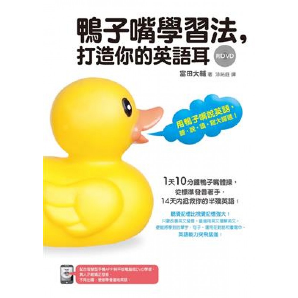 1天10分鐘鴨子嘴體操,從標準發音著手,14天內拯救你的半殘英語! 聽覺記憶比視覺記憶強大! 只要改善英文發音,直接用英文理解英文, 便能將學到的單字、句子,運用在對話和書寫中,英語能力突飛猛進! ★配合智慧型手機APP、平板電腦及DVD學習,真人示範矯正發音,不用出國,便能學會道地英語。 你是學英文不知從何著手? 會讀、會寫,但是聽不懂也說不出口的「半吊子英語」嗎? 英語能力逆轉勝,就靠前所未有的鴨子嘴英語學習法! ★每天用「鴨子嘴」鍛鍊嘴肌肉,保證學得快速又有趣! ★確實點出非英語系人士的發音障礙和盲點,讓你發音像外國人一樣道地! ★發音正確,學英語事半功倍:聽力提升,說話有自信,單字輕鬆好記,讀寫能力一點即通。 學英文沒有那麼難,校正錯誤迷思和發音盲點,英文潛力立即爆發! .英文光靠單字和文法,就能暢行無阻? .一定要出國,才能練出一口好聽的英文? .出國練的是開口的膽量,而不是標準的發音? .為何不要跟英語系人士學習發音? .英文與其他語言的發音方式有哪些不同? .只要把嘴巴張得大大的,就能說好英文? .改善發音所需的不是學習,而是鍛鍊肌肉? .為什麼美國人說話時的表情那麼豐富? 鴨子嘴學習法不同於以往發音練習的三大理由: 1. 學會一次正確發音,永遠不會忘記 2. 讓你的發音跟英語人士一樣道地 3. 不用出國,在短時間內學到正確發音 鴨子嘴學習法的六大好處: ‧交到各國朋友 ‧事業舞台更寬廣 ‧出國旅行更盡興 ‧不用字幕也看得懂西洋影片、影集 ‧說英語將成為一件樂事 ‧更有自信與勇氣