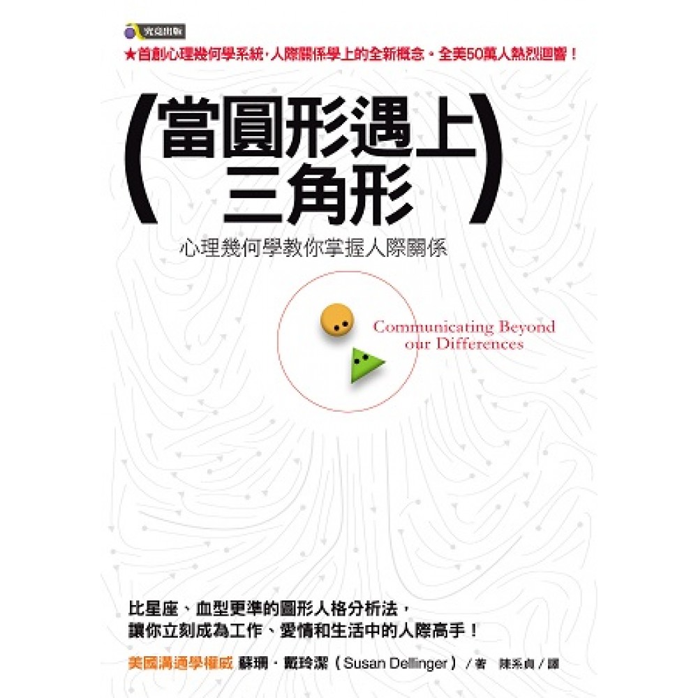 本書特色: ★人際關係學上的全新概念、美國溝通學權威戴玲潔博士的成名作,首創「心理幾何學系統」,利用五種幾何圖形:正方形、長方形、三角形、圓形、曲線來代表五種人格特質,幫助讀者更了解自己和他人的思考方式、行為舉止。 ★書中談及的人際溝通對象包含家庭(如配偶、小孩)、工作場合(如上司、同事、顧客)、情侶……等等,在面臨爭執、壓力種種狀況下的解決方法,滿足各種溝通需要,非常實用。 ★本書是西方心理學領域的經典之作,有趣易讀,是讀者學習人際溝通的最佳入門書。 ★作者戴玲潔是美國相當受歡迎的演講者,已經有超過50萬的人聽過她在溝通與管理方面的演講,演講足跡遍及美國、歐洲和東亞,均獲得熱烈迴響。 內容簡介: 比星座、血型更準的圖形人格分析法,讓你立刻成為工作、愛情和生活中的人際高手! 圓形?正方形?三角形?長方形?曲線?選出你最喜歡的形狀,就能精確解析你的個性! 為什麼有些人總是令你「退避三舍」,而有些人卻能和你「一拍即合」? 你是否在職場上遇過難搞的上司或顧客?或是總覺得另一半不懂你的心意? 面對不一樣的人,需要有不同的應對方式,就讓心理幾何學教你從行為細節辨識人的心理圖形,輕鬆破解人格差異,成為無往不利的人際高手!
