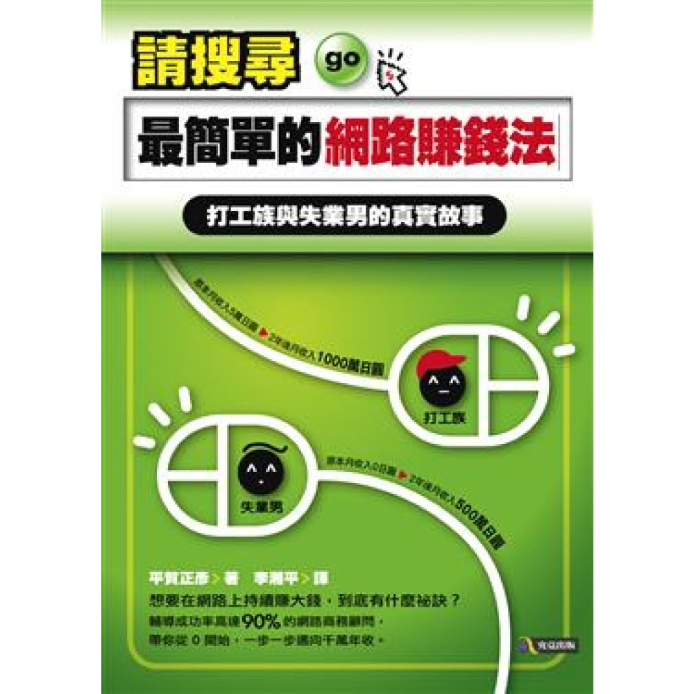 本書特色 想要在網路上持續賺大錢,到底有什麼祕訣? 輔導成功率高達90%的網路商務顧問,帶你從0開始,一步一步邁向千萬年收。 即使對行銷、網路一竅不通也沒有關係,本書將以實際的建議,讓你了解行銷和網路商機的魅力。 打工族 原本月收入5萬日圓→2年後月收入1000萬日圓 失業男 原本月收入0日圓→2年後月收入500萬日圓 本書簡介 從0開始的網路集客賺錢術 日本首屈一指的網路商務顧問平賀正彥,以精準的集客術,輔導成功率高達90%。 本書透過兩位客戶的成功案例,徹底解說網路賺錢術的箇中精髓:針對目標族群設計首頁和標題、找出有效關鍵字、合理分配廣告預算、徹底利用搜尋引擎……即使對行銷、網路一竅不通也沒有關係,文中將以實際的建議,讓你了解網路商機的魅力。 登場人物1:原本是打工族 菅野一勢先生(每月收入5萬日圓→每月收入1000萬日圓) 完全是個網路門外漢,一開始連電子郵件都還要太太代寫。先是在網路上販售外遇調查祕笈,之後又推出資訊商品創業祕笈,最高紀錄一個月賺進2800萬日圓,現在年收入更高達1億5000萬日圓! 登場人物2:原本是被裁員的上班族 榮島一博先生(每月收入0日圓→每月收入500萬日圓) 被公司解雇,抱著600萬日圓的債務來創業。一邊養三個小孩,一邊經營網頁設計公司。在作者平賀正彥的輔導下,短時間內便接到一大堆案子,現在年收入已經高達6000萬日圓! 集客達人的14個網路賺錢鐵則 鐵則1 一開始就要思考,如何讓最少的錢發揮最大效果 鐵則2 剛開始時,用不花錢的方法集客 鐵則3 鎖定目標族群 鐵則4 只要調整首頁,就可以提高成交率 鐵則5 花錢打廣告集客 鐵則6 提高商品售價 鐵則7 提升搜尋引擎排序,進一步集客 鐵則8 要有隨時可能被停刊廣告的心理準備 鐵則9 問題出現時,要能馬上因應 鐵則10 經營的網站越來越多時,讓別人來幫你行銷 鐵則11 做生意要選對時機 鐵則12 讓同一客戶重複消費 鐵則13 建立會員制 鐵則14 同時擁有好幾個收入來源