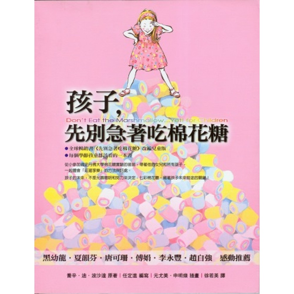 推薦序 知名暢銷理財作家 夏韻芬:萬貫家財,不如一個正確的觀念 身為媽媽,最重要的是給孩子一個正確的人生指引。「等一下啦,再等一下啦……」明明有更多更要緊的工作等著做,但是小朋友的屁股硬是黏在電視機前挪都挪不開,你家是不是也常上演著這樣的拉鋸戰?雖然「等一下」的時間不會很久,但是人生中又有多少個「等一下」?跟誘惑妥協總是輕易的,要完成夢想卻要付出努力、經歷一些看起來一點都不好玩的過程。如何教導孩子,努力過後的果實會更加甜美也更加長久是必須的。 萬貫的家財,不如一個正確的觀念。學習輕視誘惑、努力認真、守時,建立金錢觀、培養自信、安排時間。告訴自己在做任何一項決定時,必定三思而後行,衝動下的決定必然導致失敗,讓自己學會勇敢面對挫折。我從來都認為越年輕傷痕復原力越快,如果在學齡時代已懂得調適自己的心情,相信長大後面對多大的困難也不會鑽牛角尖,而會自己找到抒發的出口。在遇到不是那麼令人滿意的事時,與其浪費時間抱怨,不如把時間拿來做對的事。開始探索自己的興趣,多元化的發展,學習把時間花在對的事情上,把辛苦賺來的錢,花在有價值的事上。 以前就看過成人版的《先別急著吃棉花糖》一書,很開心現在推出了兒童版,讓小朋友更容易閱讀。本書一開始就用了生動的情境,來牽動讀者的心。不少的橋段令我會心一笑,嘿!我家也有發生這樣的狀況呢~跟小朋友硬碰硬催逼可是會得到反效果的,本書的父親有技巧性的循循利誘,啟發小女兒對自我的探索。還不算太晚喔,如果你現在才看到這本書,想讓自己更好,就從現在開始喔!不要光說不練,停止找藉口,別再等一下啦,未來都被你等掉啦!從現在就培養良好的習慣,你就不用浪費太多的時間在該做而沒做的事情上周而復始,現在就決定往夢想前進吧! 紙風車文教基金會執行長 李永豐:這本書是給孩子和大人一個很棒的禮物 這本書剛好提供一些細小的議題,卻是足以影響孩子未來人格的事件,可以讓孩子與父母參與,如果可以跟孩子共讀此書並加以對話,我想是親子溝通的好媒介。如果父母是懶惰或太忙太辛苦,可以送孩子這本書,讓孩子與此書對話進而了解生命、成長必然會碰到的問題,至少讓孩子知道他的問題也是所有孩子會碰到的問題,讓孩子會比較不孤單,心靈上也多一點依靠。 一本書暢銷有他的道理,這本書應該說是給孩子及辛苦的大人一個很棒的禮物,很高興台灣會出版這樣的書,也希望未來有更多類型的書出版,不僅幫助孩子也幫辛苦的父母多一個與孩子成長的好幫手。 格林菲爾兒童學校執行長 唐可珊:Less is More 「Less is More」、「分辨想要的和需要的」、「學會等待……」,這些老一輩的人時常掛在嘴邊的生活教育,卻是現代人愈來愈欠缺的人生智慧。在成人的世界裡,經過辛苦奮鬥,得來不易的東西,才更懂得珍惜,因而受到喜愛、尊重,獲得真正的幸福。同樣的,一個能忍住不吃眼前棉花糖的孩子,因為能自律、安於等待,長大後,各方面表現將更出色,更能夠成就幸福的。