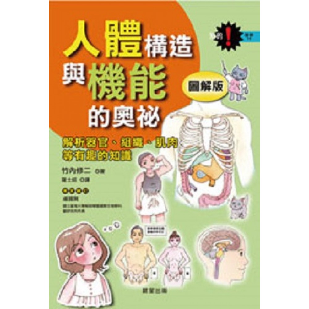 竹內修二 1947年出生於東京都。東邦大學理學部畢業。現職為濱松大學教授‧醫學博士、健康生產學部身心管理學系系主任。擁有醫科大學解剖學講座30年以上的經驗,目前在醫學部、看護學校、理學‧作業療法系、針灸‧柔道整骨學系等單位敎授解剖學的實習及課程。著作豐富,有《讓人感興趣的解剖學》(講談社)、《家庭醫學大全集》(法研‧合撰)、《人體遊記vol.1─看DVD學習人體奧妙》(西東社)等。