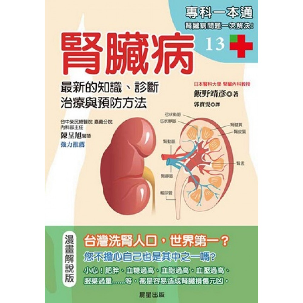 前言 第一要件是自己的身體必須由自己保護 你知道腎臟位於人體中的哪個地方嗎?另外腎臟又有幾顆呢?腎臟到底長什麼形狀,負責擔任什麼功能呢?如果腎臟的狀況惡化,身體會產生什麼異常呢?假使腎臟的狀況已經惡化,又該怎麼辦才好呢? ──能夠用淺顯易懂的方式回答這些疑問的正是本書。 腎臟狀況惡化、罹患慢性腎臟病的患者,在日本總共有1330萬人。其中大約有30萬名患者,病狀嚴重到需要進行一週3次、每次接受4小時的血液透析治療。為了預防事態演變到這種地步,各位有必要事先對腎臟的功能和腎臟病有所認識。 第一要件是自己的身體必須由自己保護。當然向醫師請益也是必要的,但是透過自己學習正確的知識,就能夠運用在日常生活之中,藉此預防腎臟病。而且若是輕度的腎臟病,甚至可以阻止病情惡化。 從腎臟的功能、疾病的種類甚至治療的方法,通通都集結在這本書之中。對於一般大眾和患者而言,這本書是最適合用來了解腎臟病的書籍。 據說未來的醫療即將面臨的時代,就是患者和醫療人員同心協力的時代,以期能夠找出使患者幸福的預防方法和治療方法。我衷心祈禱能夠藉由本書,讓大家的生活更加美好。 寫於梅雨間歇的日光中 日本醫科大學腎臟內科教授 飯野靖彥