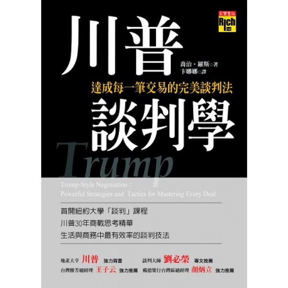 推薦序:看傳奇人物如何談判/劉必榮(談判大師) 第一次看到這本《川普談判學》,是前年我在馬來西亞上談判課的時候。當時在吉隆坡一個外文書店,看到書架上堆著好幾落《川普談判學》。一時好奇,買了本來看,沒想到一看就閤不起來了。就這樣,在回程的飛機上一路看回台北。這本書不但好看、實用,而且英文簡單,很容易閱讀。所以回來後我就跟幾家出版社建議,應該把這本書簽下來,譯成中文以饗讀者。結果發現高寶早就簽下來了,眼光之準讓我很驚喜。現在書也譯出來了,展讀之餘,我發現譯者的文筆相當流暢,讓我讀中文有和讀原文一樣的快感,這是相當難能可貴的。這本書吸引我的地方,是作者在書中展現的「誠懇」。 平常我們想到川普,第一個印象就是他是億萬富翁,跌倒過又爬起來的傳奇人物。 一九八六年我剛回台灣教書的時候,川普正紅,川普大樓剛蓋沒多久(我在美國讀書時,曾於一九八四年到紐約遊玩,紐約的學弟還拉著我登上川普大樓,附近人聲鼎沸,車水馬龍,還真盛況空前),所以市面上就有關於川普傳奇致富的中文翻譯書。後來川普垮了,好一陣子關於他的書,在書肆就找不到了。這幾年他東山再起,於是寫他的書又出現了,這還真反映出社會的現實面。這樣的人物,一定很冷酷,不一定是奸商,但肯定像兀鷹一樣目光銳利,穩準狠冷。他的律師也應該是這樣的人。誰知並不是。書中呈現的是一種溫馨,有談判者的機智,但也充滿了人情味。我最欣賞的,是作者強調一個學了談判的人,表現出來的必須是一個「達成協議的人」(dealmaker),而不是「破壞協議的人」(dealbreaker)。 這也是我後來上談判課,經常向學生引用的書中的話。理想中,你學了談判後,出現在談判桌上時,對方應該很高興才對。因為你來了,你知道該怎麼給一點、得一點(giveandtake),而不是贏者通吃,這樣談判就有希望達成了。你是那種「即之也溫」,一團和氣的可敬對手。反過來,如果你自以為學了談判,走起路來虎虎生風、充滿殺氣,你一出現對方避之唯恐不及,這樣的談判就完全學錯了。作者在第一章 就舉了川普和坎德爾談川普大樓的案子。當時坎德爾很坦白地告訴川普,他想為兒孫留下一筆可以長期收現的資產,而不是一大筆現金。川普對坎德爾的坦誠以對表示尊重,於是說:「我原本沒這個打算的,但是如果你想要這樣做,這會讓你開心,那就這麼辦吧。」這句話講得多好。 川普告訴律師(就是本書作者羅斯)說:「請你跟李奧(坎德爾的名字)敲定細節。我要你擬一份充分保護李奧的權益,同時足以提供川普大樓成功所需的租約。」這句話也讓對手坎德爾相當動容,結果他竟然也委託羅斯,而不是他自己的律師,來擬定租約。這在談判中是很少見的狀況!也就是這種互信的氛圍與雙贏的結局,讓我很感動。同樣的互信也存在川普和羅斯之間。在第三章中,羅斯講了一個故事。他說有一次他談妥了一個複雜的租約,厚達一百多頁。當他拿給川普簽字時,川普只問了一句:「租金多少?」就在羅斯指的地方簽了名,一百多頁的文字翻都沒翻一下。 羅斯說:「他只想知道會收到多少租金。他知道——而且深信不疑——租約裡如果有其他重要的事,我一定會告訴他。他確信像我這樣的人一定會保護他的利益,也知道我會在適當的時限內完成所託。我知道他絕對不會因為文件裡遺漏或出現的小事項批評我。關鍵在於,他知道如果有他必須知情的重要事情,我一定會跟他討論。」這是多難得的君臣知遇啊!看到這段,我終於知道川普之所以為川普的原因了。 第二章裡有個例子也很精采,羅斯講到明尼蘇達有一個想賣「川普冰」的經銷商,如何讓他感動,而取得經銷權。 經銷商給了羅斯一個驚喜:讓羅斯穿著有他自己幸運號碼的球衣,在明尼蘇達棒球隊雙城隊的主場開球!當這位七十六歲的老律師在萬千球迷歡呼下,丟出一個好球的時候,你可以想見那種high!羅斯被經銷商的創意折服,經銷商也成功拿到當地川普冰的專屬經銷權。這個案例也看得我拍案叫絕。它反映了美國的運動文化,也點出了一個談判的精要:要說服像川普這樣見過大風大浪的人,靠的就是創意,而且要比快。因為它只能用一次,第二個人再用這招就沒效了。作者在書中也指出了幾個談判常犯的錯誤,這幾個部分也相當實用。比如作者說,我們常常以為「我知道的事情,對方也知道」,但這個預設是錯誤的。我很同意。因為對方充其量只會有一些「假設」,他假設我有時間壓力,假設我必須在什麼時間之前達成協議,然後一一檢驗。但他不一定有把握。如果我自己認為他已經知道我有時間壓力了,我就會把自己想得很弱,結果反而陷入困境。根據談判理論,談判有一個要素,那就是「不完美的資訊」。 沒有人能做到百分之百的「知彼知己」,所以學者才會把談判過程稱為「控制之下的資訊流動」(controlledinformationflow)。 對照羅斯的實務經驗,當有更多的啟示。這裡也必須談一下談判的速度。 孫子兵法說:「兵貴拙速。」就是寧可「拙」而「速」,也不要「巧」而「久」。 這是叫你快。 但是兵法也說:「徐如林。」又要你慢得像一片樹林一樣,看不見它的移動。那到底該快還是該慢呢?其實這是戰略和戰術不同的層次。羅斯在書中就提醒讀者,不要急功好利,一下子就達成協議。慢一點,用一些技巧去控制談判的步伐。不要馬上接受對方開出來的條件,偶