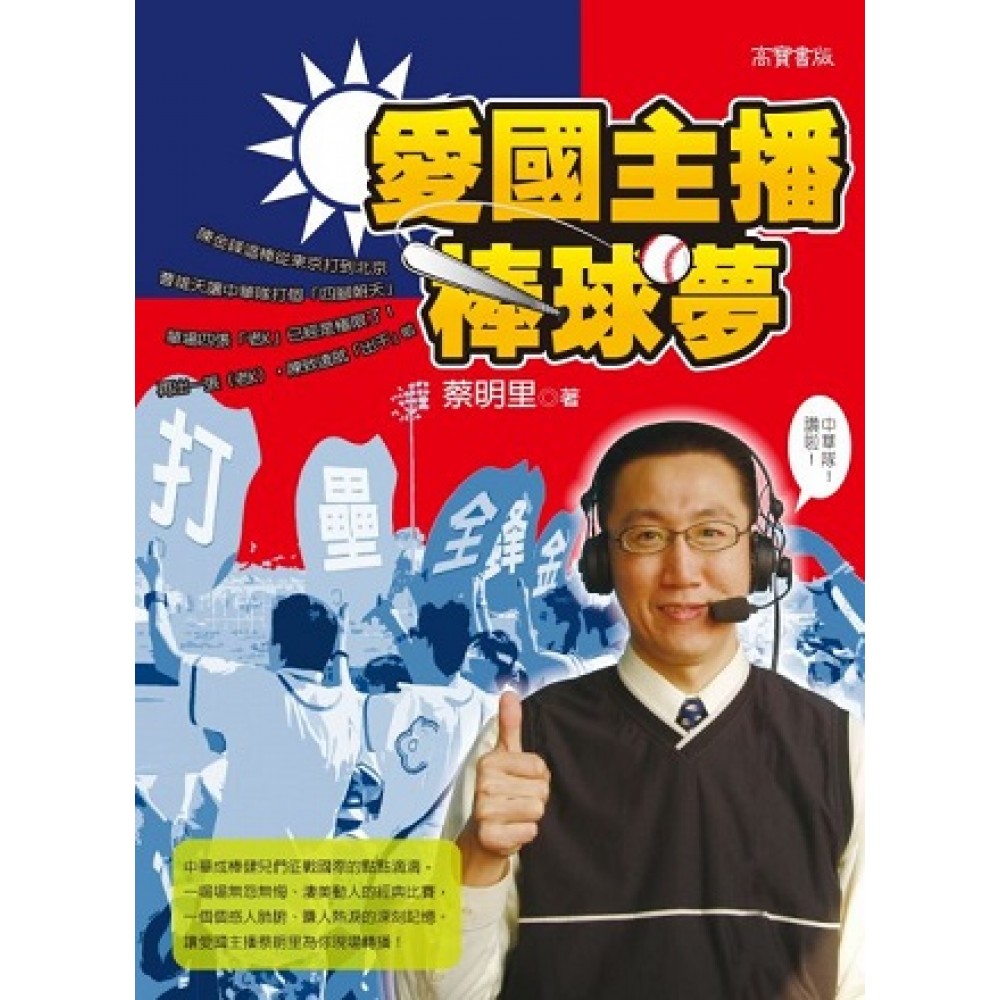 棒球,讓臺灣更美好!前進吧!臺灣棒球! 這是蔡團長與全國球迷共同的棒球奮鬥史! 陳金鋒這棒從東京打到北京! 曹雄天讓中華隊打個「四腳朝天」! 單場四張「老K」已經是極限了!再出一張(老K),陳致遠就「出千」啦! 中華成棒健兒們征戰國際的點點滴滴, 一場場無怨無悔、淒美動人的經典比賽, 一個個感人肺腑、賺人熱淚的深刻記憶。 讓愛國主播蔡明里為你現場轉播! 尚未牙牙學語,就能理解主審的好球手勢;不曾讀書識字,「奧斗」、「紅不讓」便已琅琅上口。 昔日的棒球小神童,今天的愛國主播,是如何在體育界裡翻滾走跳十餘載呢? 熱愛棒球、喜歡蔡明里的讀者千萬不能錯過! 【蔡語錄.精彩摘節】 『同樣的技倆,如果鄭民台是金光黨的話,早就被民眾檢舉數十次了,詐騙的手法都一模一樣……』 (鄭民台當時的絕技就是「超級小便球」,陳致遠第一張「老K」,就是被這種球路所騙的,但如同一些可憐的老百姓一樣,陳致遠還是被「歹徒」騙第二次,連吞兩張「老K」!) 『我們也另類的恭喜鄭民台,他的腳傷看起來是真的……』 (這是標準的「落井下石」,好像已經把鄭民台KO似的……) 『南韓隊事實上是一個比較「鐵齒」的民族,所以這時候鄭民台不怕死,還繼續在場上投……』 (果然這局就來了兩次「有機會」,比數也追平啦!) 『其實大家這時候也可能忘記看手錶,不知不覺這場比賽已經打了一個半鐘頭,當然很大的責任是鄭民台,因為只要有危機,他的節奏實在有夠慢……』 (輪王建民、陽建福投,我們會立即改說「慢慢來,沒關係」!) 『左打右打、左投右投,都只是一個「表相」!重點是「誰怕誰」(烏龜怕鐵鎚)……』 (雖然我接著又端出一些歷史數據來「唱衰」林昌勇,但其實心裡是蠻「挫」的,他老兄一上場,又給咱們陳致遠「補上」一張老K,讓他湊成「K三條」!) 『李鍾範眼睛還望著二壘審耶!想搏取一點同情嗎?用台語來說這是:「死到有剩」!』 (看慢動作重播,然後聽到這麼「實在」的形容,猶如吃草莓,還沾煉乳一樣,就是一個「爽」字!) 『還在看!看什麼看!好球就是好球!』 (八局上朴栽弘被陽建福三振,第三個好球讓他「立正站好」,然後他用不甘心的眼神「青」主審,那我們當然要跳出來「聲援」裁判囉!) 『金東柱就是嫌他的手不夠長……』 (揮棒落空還要被人「虧」……,十局上韓國隊三上三下。) 『不過現在三壘手換誰?說實在的,大家一點也不關心……』 (十局下張泰山又靠選球獲得保送,這種時候,誰還管韓國隊三壘手是誰?) 『有!機!會!……(破音絕技開始)中華隊贏了!中華隊贏了!又是高志綱……跟2001年一樣……』 (這應該是最悅耳也最難忘的一句「蔡語錄」吧!裡頭還夾雜了一些球評曾文誠的歡呼聲,其實一口氣講了一大串,但「又是高志綱」之後,大家都樂了、都醉了、也都瘋了,沒錯吧?) 『我也非常高興,保住了我的頭髮!我是有自信的,待會兒我要快遞剪刀給金在博,要剃光頭的是南韓隊…』 (其實這時候球評曾文誠的麥克風,已經不知「High」到哪裡去……) 『不管你今天是翹班的,還是翹課的,都非常值得吧?』 (很多上班族與學生,都一起猛點頭…。球評曾文誠還是找不到麥克風,我也只好彎下腰陪他一起找……) 『金在博,他剛才講什麼,重要嗎?一點都不重要(聳肩狀)!這時候看他還蠻和藹可親的……』 (國際賽也有夠殘酷,輸球後還要出席官方賽後記者會,還要聽台灣主播「超虛偽的安慰」……) 『這個勝利,也屬於所有陪中華隊練球的世界盃球員,以及因傷退賽的蔡仲南……』 (高志綱是令人印象深刻的「再見英雄」,但通往雅典奧運的過程中,每一個參與者,無論是在前線或是後勤,人人都是功臣,人人也都是英雄!)