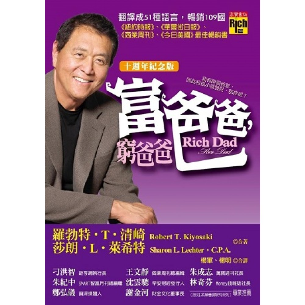 《富爸爸,窮爸爸》在台十週年紀念版,邀請多位國內財經專家一同來共襄盛舉,為富爸爸窮爸爸這本書作見證! ◎《富爸爸,窮爸爸》一書已翻譯成51國語言,銷售109個國家 ◎《紐約時報》、《華爾街日報》、《商業周刊》、《今日美國》最佳暢銷書 ◎《紐約時報》暢銷書排行榜第一名,並在榜長達七年 ◎長踞國內各大書店暢銷排行榜,熱銷超過50萬本 ◎被全世界讀者公認、推薦、迴響,並譽為「每個人都應該有一本」的好書 十年前, 羅勃特.T.清崎運用富爸爸和窮爸爸的真實故事, 揭櫫富爸爸之所以為富人的祕密, 直指出世界上絕大多數的人們對於金錢概念的混淆, 他用簡單的對話告訴我們應該如何做,才能走上富人之路。 十年後, 我們重新對照清崎當年所云,只有一個感想, 整個世界似乎繞著他的言論在轉, 但事實上,是清崎及早看到金本位制取消後的全球, 或者應該是說,富爸爸早就預應了金融海嘯的到來。 《富爸爸,窮爸爸》這本劃時代的書籍至今已邁入第十年,無論在哪個時間?哪個地點?讓人有種歷久彌新的感受。每一次的翻閱和品嚐,帶來的感想和作為也不盡相同。 整個故事的架構圍繞在作者羅勃特.T.清崎童年時,兩位爸爸教他的面對財務所應該要有的想法和體悟。窮爸爸是清崎的親生父親,他跟我們大多數人的爸爸一個模樣:「努力讀書,找一個穩定的好工作!」但是換來的是鎮日與金錢拼博,為了錢而工作,但最後卻留下幾只債務;而清崎的富爸爸告訴他,要成為有錢人的方法,是讓錢為他工作,並指導面對財務應有的IQ。 文中倡導的「現金流」概念,至今仍影響著許許多多人們,甚至是商業界、金融界也將現金流的遊戲概念運用於組織發展之中。誠如書中所言,我們應該告訴我們的孩子,真正財務IQ,讓他們在受學校教育之餘,更懂得財務的現實。該是選擇富爸爸致富的捷徑的時候了!