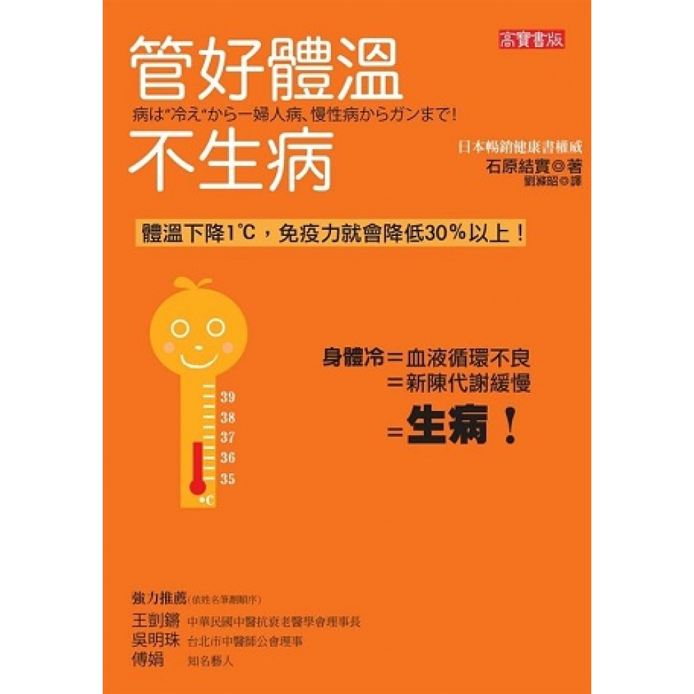 ★日本保健醫學權威、健康暢銷書作者石原結實力作 ★所有的疾病,都與「寒氣」有關 ★體溫下降1℃,免疫力也會降低30%以上 ★提出許多顛覆一般既定印象的觀點,如多喝水反而會降低體溫,導致肥胖 「畏冷」常被認為是女人常見的症狀,但其實它不分男女老幼,是每個人都該關心的健康問題。近年來,其實有畏冷症狀的人愈來愈多,但多數人仍沒有自覺,俗語說:「感冒是萬病之源」,英文的感冒是common cold,也就是說cold就是萬病之源。針對「感冒會引起各種疾病」這句話,現代醫學的解釋是因為免疫力下降,但免疫力下降就是因為體溫下降的關係,也就是說冷才是萬病之始。 現代生活中存在很多引起冷的因素,例如:空調、天熱吃冷的食物、運動不夠使得身體熱能不足等,而長期讓身體處在「冷」的狀態下,很容易引起各種慢性病、腸胃病、肥胖、免疫力下降……甚至適癌症!為了避免發生病症,讓身體更健康,最好的辦法就是「保持身體溫熱」、「促進血液循環」,而這才是養生的法則。
