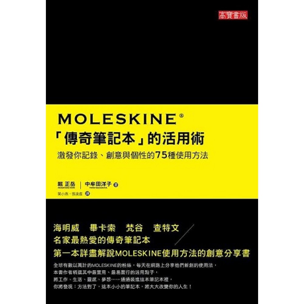 堀正岳 1973年生於美國伊利諾州,理學博士。本業是以地球暖化評估和氣候模型分析作為研究主軸的研究員。目前在網路上主持一個以Lifehack(提高效率的方法)或工作管理技巧為主題的部落格「Lifehacking.jp」。他的理念是「Lifehack是改變人生的一項小習慣」,介紹眾多如雲端時代的生活與工作型態、到iPhone.iPad.Moleskine等等精巧工具或文具用品的活用法。 著作有《iPhone情報整理術》』、《情報篩選工作術》等等。 Lifehacking.jp lifehacking.jp/ 中牟田洋子 1982年出生於福岡縣。目前為日本最大MOLESKINE粉絲網站「moleskinerie.jp」的管理者,每日持續更新與MOLESKINE相關的新資訊。其中介紹許多全球MOLESKINE愛用者網頁、客製化方式、資訊活用法、可搭配的文具用品,與「手寫」或「記錄」相關的議題討論。現居於倫敦。 moleskinerie.jp www.moleskinerie.jp/