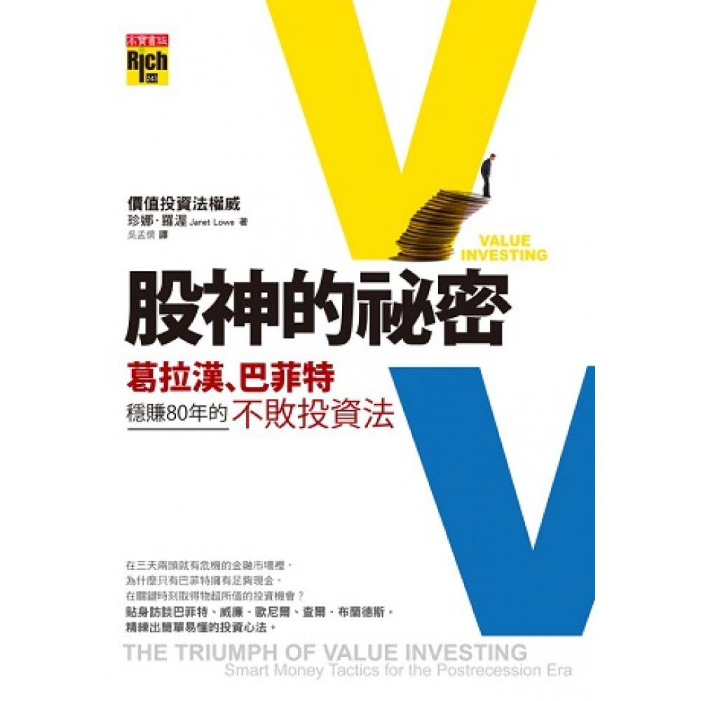 ◎第一本最好懂、最清楚,為散戶而寫的基礎投資工具書,讓完全不懂投資的你也能藉由這本書掌握價值投資法的技巧,跟巴菲特學投資。 ◎價值投資法權威 珍娜.羅渥貼身訪問巴菲特、威廉.歐尼爾、查爾士.布蘭帝以及多位全球知名價值投資大師,精練出簡單易懂的投資心法。 葛拉漢、巴菲特、彼得.林區、約翰.坦伯頓等投資大師親身實踐、推廣, 後金融海嘯時期最穩健的投資法----價值投資法 貼身訪問巴菲特、威廉.歐尼爾、查爾士.布蘭帝以及多位全球知名價值投資大師,精練出簡單易懂的投資心法。 在三天兩頭就有危機的金融市場裡, 為什麼只有巴菲特擁有足夠現金, 在關鍵時刻取得物超所值的投資機會? 2007年、2008年金融海嘯讓所有投資人損失慘重,就連最保守穩健的價值投資法也不例外。不過到了2009年,價值投資大師巴菲特所領導的波克夏公司卻創下45年來最佳的投資紀錄。歷史資料也顯示,如果拿100萬投資在價值型股票,5年後市值會成長至220萬,成長型股票則只有160萬;如果拉長到10年來看,價值型股票的市值會成長到490萬,成長型股票則為310萬。 為什麼價值投資法可以領先其他投資法? 而且歷經第二次世界大戰、石油危機、亞洲金融風暴、網路泡沫、金融海嘯都屹立不搖? 因為價值投資法正是最適用於金融危機時期的投資方法。 價值投資之父葛拉漢告訴我們,價值投資就是找尋價格低於內在價值的證券,買下並持有,直到出現非賣不可的理由再賣掉。 什麼時候會出現很多價值被低估的好股票呢? 就是經濟大幅震盪的時候。 本書將葛拉漢的價值投資理論加以改良,並針對後金融海嘯的投資環境,發展出價值投資法的新應用,以淺顯易懂的語言,清楚描繪出21世紀新型價值投資心法,讓完全不懂投資的你也能藉由這本書掌握價值投資法的技巧,在經濟動盪時期跟著巴菲特一起學投資、賺大錢。