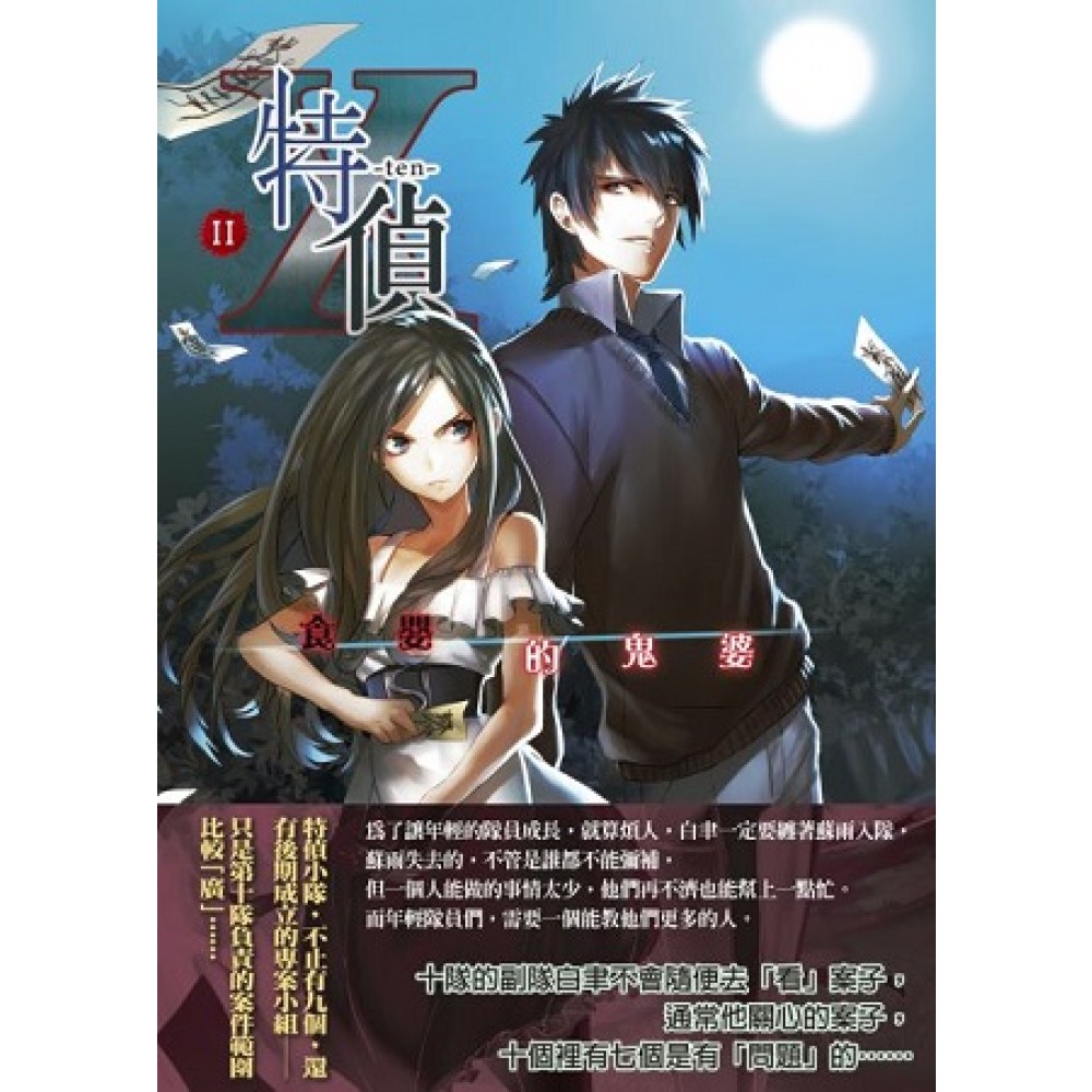 非人的案件就要交給非人的專家來處理,才一次的合作就讓蘇雨見識到偵十隊的「實力」,那種連三流天師都不如令人堪憂的能力…… 在「知更鳥之亂」之後,蘇雨早已不想再涉入這種常人理解外的案件。偏偏第十隊的副隊白聿,就像是頭固執的牛,一而再、再而三的拉著蘇雨協助偵查,力邀他轉調進第十隊。 此時,沉寂多年的吃嬰鬼婆婆又出現了, 這個吃娃娃的鬼婆過去犯案的時候還是個「人」,也已經結案。 今次的事件卻發現鬼婆已不是「人」,而她的靈魂早就被天師協會的人接走…… 特偵小隊,不止有九個,還有後期成立的專案小組── 只是第十隊負責的案件範圍比較「廣」…… 十隊的副隊白聿不會隨便去「看」案子,通常他關心的案子,十個裡有七個是有「問題」的…… 為了讓年輕的隊員成長,就算煩人,白聿一定要纏著蘇雨入隊, 蘇雨失去的,不管是誰都不能彌補,但一個人能做的事情太少,他們再不濟也能幫上一點忙。 而年輕隊員們,需要一個能教他們更多的人。 八年前有個老太婆偷走六個嬰兒,遺棄屍骨於農地,當年輕的天師們找上她的時候,老太婆已經死了,這一次只是聞到一種噁心的味道,回過頭孩子就不見了! 人物介紹 姚綺月 年齡:23 身高:157 體重:祕密 有點嬌氣的大小姐,自尊心很高,但面對她尊敬的人會買上變成可愛溫柔的小女孩。 特殊能力:畫符紙、擺陣式,但是學藝不精常常漏洞百出被小貴糾正。 景言 年齡:17 身高:168 體重:56 沉默寡言,認真乖巧,不太懂得玩笑的少年 特殊能力:畫符紙、擺陣式,天分比起他過世的哥哥有過之而無不及,是景家下一代繼承人。