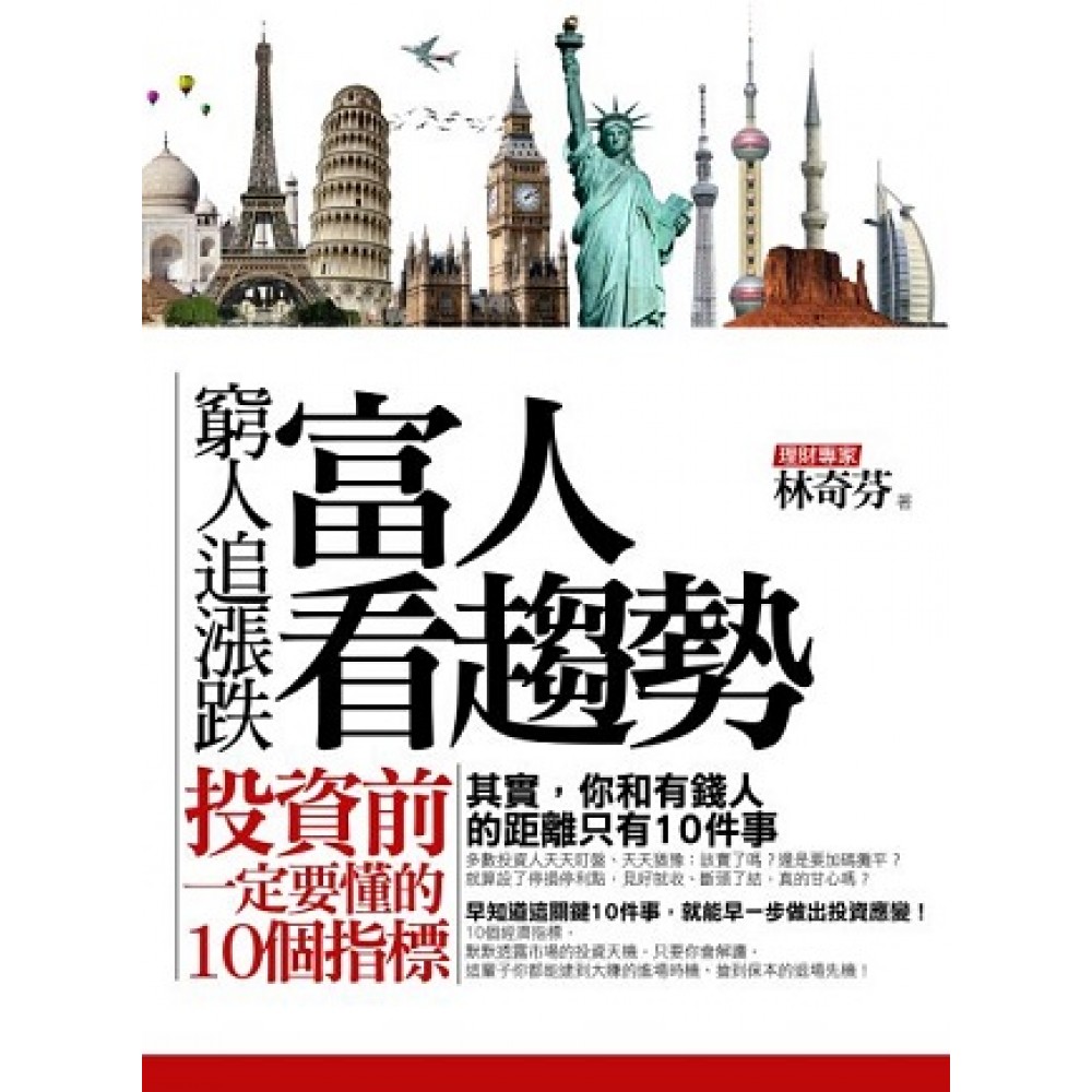 其實,你和投資高手只差10件事 多數投資人天天盯盤、天天猶豫。心情總隨著市場起伏,忽冷忽熱、焦躁難安。 許多富人卻久久才出手一次,可是卻很精準地抓住底部、賣在高點,輕鬆落袋。 早知道這些關鍵數字,就能早一步做出投資應變 10個經濟指標, 默默透露市場的投資天機, 只要你會解讀, 這輩子都能逮到大賺的進場時機、搶到保本的退場先機! 想要當有錢人,一定要懂得解讀這些指標、調整你的投資策略! ◎為什麼美國QE退場,債券市場就大暴跌? ◎為什麼經濟負成長,卻是買股票最好的時點? ◎為什麼「匯率」持續貶值→股市要小心! ◎為什麼PMI指數突破50以上要買股票? 一年有四季,景氣也有春夏秋冬,這就是常說的「景氣循環」。就是因為景氣會循環,我們才能預測下一波趨勢,而經濟指標就是預測的根據。像是利率、匯率、失業率、原物料指數等等不同面向的重要經濟指標,透過林奇芬以簡單的語言,搭配近年來重要的國際金融事件及圖表的走勢,馬上就能輕鬆學會、立即應用在基金、股票的投資上,甚至連定存族與購屋族都可以現學現用。學會看懂經濟指標,能夠有憑有據地判斷現在該買進還是賣出,能對自己的投資策略胸有成竹,而且從此不用再追著一日行情的漲跌而心驚膽跳!