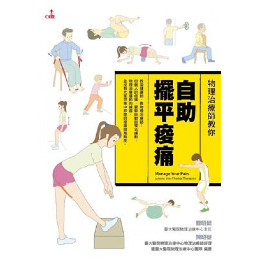 自己的痠痛自己解 曹昭懿 維持健康,預防疾病是每個人自己的責任,同樣的,自己的痠痛也要靠自己運動才能根本解決! 臺灣的健保太好了,不限制民眾使用物理治療的次數,但他的支付規定,讓一般醫療院所趨向提供簡單好用、看似高科技的儀器治療,這樣比花費時間教運動,做徒手可以得到更多健保給付。於是在一般的診所裡,治療師機器開個不停,病人從A床轉到B床,再換到椅子上,動輒耗費一兩個小時接受所謂的『復健』,問題是:您的痠痛解決了嗎? 臺大醫院的物理治療中心在2008年成立,是全國醫學中心首設的獨立物理治療部門,自許為臺灣物理治療專業的領航者,期待經由我們的努力樹立專業的臨床典範,帶給專業新的視野,也帶給民眾更多的健康。在院方的支持下,中心的治療師們兢兢業業開創了許多不一樣的臨床執業模式;我們知道,只有仔細評估,找出問題所在,設計正確的治療性動作,教導正確的運動方法,帶著民眾好好練習,才是根本解決痠痛之道! 然而,我們遇到的困難是,仔細教了運動,大家也練習了,單張也發了,卻有很多人下次來還是「忘記了!」、「找不到了!」,所以我們想,寫本書,讓大家更瞭解我們設計的動作,更不容易忘記、不見,或許能讓大家更能為自己的健康負起責任,解決自己的痠痛! 要提醒大家的是,有了不適,還是先看醫師,找物理治療師,確定問題後,再來使用本書幫助自己! 本書由臺大醫院物理治療中心多位物理治療師共同撰寫而成,以下依書中文章出現的順序依次介紹: 林家德治療師針對常見的「媽媽手」、「肩夾擠」和「下肢關節炎」等疼痛問題,分別寫了「大拇指的抗議」、「操勞過度的肩膀」、「退化性關節炎」這三篇。 黃敏瑄治療師則是為上班族以及年輕愛運動的女性,寫了最常發生的「不良姿勢引發的肩頸僵硬痠痛」、「爬山後的膝蓋疼痛」。 陳甫銓治療師平日即提供院內員工體適能檢測及帶領員工運動班,他針對一般人的體能檢測,以及運動前的暖身做了詳細介紹,分別是「運動前的暖身怎麼做」和「從爬樓梯看體適能」。 陳君豪治療師是我們的足部專家,寫了「打球的足踝關節扭傷」、「下床踩不了地、邁不開步」兩篇常見的足踝問題,同時提供大家選鞋的建議,很值得參考。他也針對「腕隧道症候群」和「網球肘」分別寫了「都是滑鼠惹的禍」、「沒打網球也得網球肘」。 楊宛青治療師把門診中常遇到的背痛(坐骨神經痛)族群,根據不同病源寫了「這些都是腰痛嗎」和「老年骨刺與腰痛」。 陳昭瑩治療師(中心經理),在門診固定接受醫師轉來的骨質疏鬆病人,從急性疼痛到慢性不適的處理,累積了多年經驗,全寫在「脊椎壓迫性骨折」這篇中。 書中每一篇雖是虛擬人物的病症,卻是根據臨床常見好發的年齡與性別來設計,讀者們可以「對號入座」,找找自己合用的章節,與物理治療師們來一個另類接觸── 自己的健康自己顧,自己的痠痛自己解; 預防、治療、復健,讓物理治療師幫忙您!