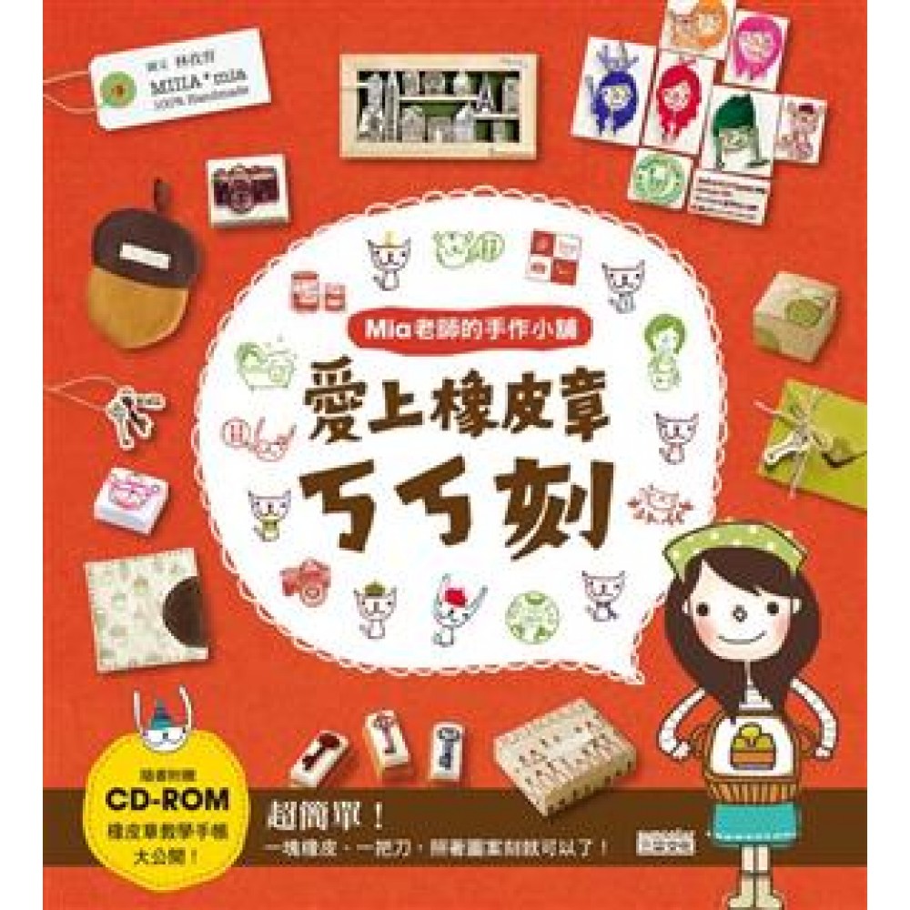 Mia老師的橡皮章教學手帳 大公開! 超簡單!一塊橡皮、一把刀,照著圖案刻就可以了 ~ 書中以1~12個月份來分類,主要想法與呈現的主軸是能將橡皮章帶入生活日子中,希望不僅是橡皮章的圖案與生活有關,就連橡皮章的運用都很生活。就好像是看一本日記和欣賞一個生活態度般,把橡皮章帶出來,看見橡皮章如何在自己的小日子一起度過。所以想將橡皮章與小日子做結合,以日常中會遇到的日子、生活點滴來切入印章主題。 Part1 從這裡開始:初步的介紹和技法等等,就是很單純的入門介紹。 Part2 用印章寫日記、過生活:創作成品與運用,在最實際的生活中。 Part3 印章不只是印章:印章結合多種媒材來運用,變化更多花樣更多。 本書特色 ●圖案種類眾多 高達470圖 ●48種應用範例 增添生活樂趣 ●新橡皮章蓋印法 疊印更好玩! ●多媒材應用 變化更多創意 ●附贈圖案光碟 讓你自由應用