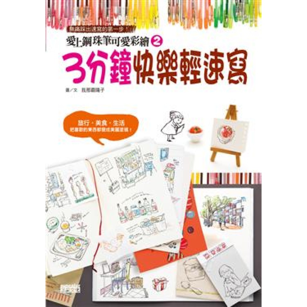 旅行.美食.生活輕速寫 把喜歡的東西都變成美麗的塗鴉吧! 你知道嗎?鋼珠筆也能滑溜溜地畫出速寫的痛快! 輕速寫是一件讓你全身快樂的血液都會噴張、熱活起來的事!它講究快速、立即捕捉眼前畫面的輪廓,讓那深刻畫面永遠留在紙上。最棒的是,這件事並不會花掉你很多時間! 繼作者大獲好評的前作【愛上鋼珠筆可愛彩繪】後,睽違1年出版的【愛上鋼珠筆可愛彩繪2:3分鐘快樂輕速寫】更採取進階入門的角度規劃,從輕速寫最基礎的繪畫原理解說起,有基本的形狀、質感、透視、動態速寫、食譜速寫、風景速寫到整體畫面的表現技巧一氣呵成!只要你手中有一枝鋼珠筆,立刻就能滑溜溜地畫出速寫的痛快! 本書特色 1-無壓力的輕速寫養成法:不花太多時間,讓你立即捕捉眼前畫面的輪廓。 2-工具快速取得:只要有一枝鋼珠筆就可以畫了。 3-多元化的應用:有旅行日誌、動態速寫、食譜速寫、風景速寫讓你實際活用! 4-不失敗、好上手:清楚Step by Step教學,讓你簡單易學、快速上手。