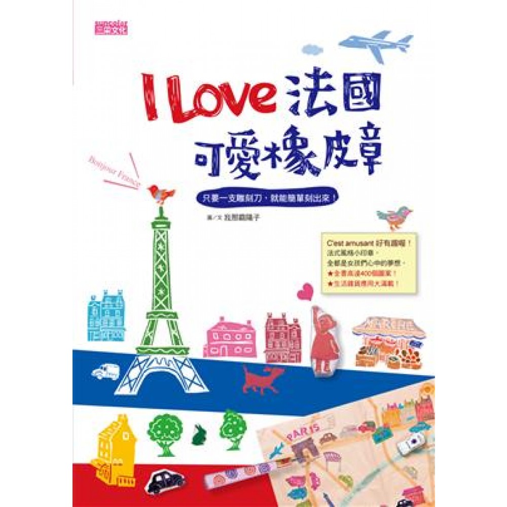 ★ 【愛上鋼珠筆可愛彩繪】(1)(2)作者-我那霸陽子新作! ★ 高達400個圖案,法式生活風格應用大滿載! Bonjour France 玩弄色彩、享受組合的樂趣 ~ 法式風格小印章,真是好玩極了! 全都是女孩們心中的夢想, 讓你彷彿置身於巴黎的商店街。 把自己喜歡的花樣圖案,製做成一個印章的話, 即可在各種不同的物品上,蓋上許許多多相同的圖案。 做成兩個印章的話,還能享受組合搭配的樂趣。 如果做成三個的話,你可能已經成了印章的小俘虜了。 在這裡,我每天都置身於我最喜歡的可愛事物中 ~ 全書以法國作為背景,並分門別類的介紹各種景色和圖樣,包括知名建築物、街道上的人事物、法式廚房餐具、主題特色店家、四季水果、法國風紋樣及花邊造型等,並實際將圖案結合在生活上,讓隨身物品還有家中周圍都能充滿浪漫的法國風情。 只要一支雕刻刀,簡簡單單就能刻出來! 刻越多越好玩,組合搭配不同色彩的印台來蓋章,將能形成立體的感覺,塑造出一個個美妙的圖畫。 本書特色 這麼多印章,都是一塊橡皮板刻出來的! ★全書高達400個圖案! ★生活雜貨應用大滿載!