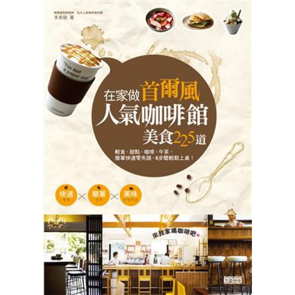 你一定有過面對咖啡館琳瑯滿目的餐點卻猶豫不決的經驗, 因為每一道都好想吃吃看,最後卻只能選一樣, 從現在開始,你再也不用這樣天人交戰啦! 韓國知名餐點開發師.弘大人氣咖啡館老闆不藏私大公開 咖啡館之都首爾在地人最愛的定番美味! 不論是可以填飽肚子的佛卡夏三明治、普羅旺斯燉菜、歐姆蛋, 還是滿足味蕾享受的法式可麗餅、布朗尼、舒芙蕾, 或是最能舒緩心情的焦糖瑪奇朵或抹茶拿鐵, 各式美味隨你自由選擇。 咖啡館的幸福滋味,在家就能品嘗得到! ★手感咖啡 ★馨香午茶 ★特調輕飲 ★夢幻甜點 ★輕食沙拉 ★手工麵包 ★飯麵料理 ★午餐盒 咖啡館8大類美食.225道料理,一本搞定,絕對專業,卻絕對簡單, 再也不用上網四處爬文找食譜,也不必擔心自己廚藝不精會失敗。 ★ 簡單快速 × 零失誤 食材、份量、作法,專家祕訣小提點,新手也能輕鬆上手,6步驟內變出一道夢幻美食! ★ 多蔬少油 × 零負擔 少油少煙是韓國飲食的特色,以醃製、涼拌、燉煮與蒸烤為主的輕烹調,加上韓國人大量食用蔬果的輕養生概念,讓每一道美食都能吃得健康又清爽。 本書特色 1. 韓國知名餐點開發師.弘大人氣咖啡館老闆,首次公開首爾人最愛的咖啡館美味! 2. 立即學會咖啡、午茶、輕飲、甜點、沙拉、麵包、飯麵、午餐盒等8大類美食,健康營養又簡單。 3. 在家即可享用的咖啡館美食,225道隨你選擇,自己動手做更有樂趣。 4. 書中每道食譜皆搭配詳細步驟圖解,跟著做絕不失敗;超可口的完成圖更是讓人食指大動。