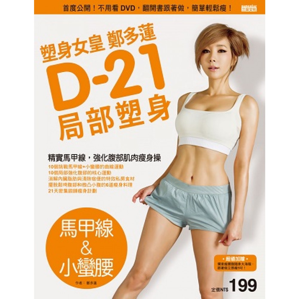 腰間肉、三層肚、鬆軟肉,別再讓它出來見人了! 微凸小腹,怎樣吸氣都無法消除?粗大水桶腰,穿衣服後完全沒曲線? 首次大公開!驚艷日本、中國、台灣,鄭多蓮的「超完美體態」獨創瘦身操, A~F六種符合體力、身型的鍛鍊操, 6套循環運動,共35個分解動作, 每天30分鐘,鄭多蓮教妳擺脫鬆軟肥大的肚子, 21天後穿上比基尼、秀出精實馬甲線、擺出迷人腰線!! ★超值加贈-獨家瘦腰腹隨身大海報,跟著做立即瘦1吋! ★搶先預告! 3、4冊將陸續強勢推出,敬請期待! 想擁有令人稱羨好曲線,千萬不可錯過! 第3冊-緊實臂+性感鎖骨 預計出版日期:2013年10月25日 第4冊-渾圓胸+誘人美背 預計出版日期:2013年11月8日 ★第1冊-蜜桃臀+纖長腿,火速熱賣中! 大部份的女性都是在二十五歲開始出現微微隆起的小腹,失去曲線的水桶腰不僅讓人顯老,穿起衣服更不好看。保持每天持續的運動習慣才能讓妳找回苗條的好身材。現在每天只要30分鐘,雕塑妳的緊實馬甲線和纖細小蠻腰! ★打造精實馬甲線、強化腹部肌肉,不挨餓且瘦小腹的瘦身料理 10個挑戰馬甲線+小蠻腰的曲線運動 10個局部強化腹部的核心運動 消解內臟脂肪與清除宿便的特效私房食材 擺脫鬆垮腹部和微凸小腹的6道瘦身料理 21天密集鍛鍊瘦身計劃 本書特色 1.不用看DVD、不因時間和地點受到侷限,隨時跟著做輕鬆瘦。 無論是時常加班的OL,或是想變身正妹的大學生,不用苦惱於還要找撥放器才能跟著DVD運動!現在只要妳想做,就能隨時按圖索驥輕鬆瘦! 2.塑身女皇親自示範,6套循環運動,共35個分解動作,每天30分鐘局部瘦。 可依照自身的運動能力自行組合這6套循環運動,共35個分解動作,提供雕塑腹部線條運動,以及「21天密集鍛鍊瘦身計劃」,方便讀者量身打造適合自己的瘦身計劃。 3.各種角度動作圖示、淺顯易懂的說明,精準標示可練到的肌肉部位。 各種角度的分解動作圖示與說明,一眼就能看懂正確動作,引導正確的重點動作之外,特別點出需要注意的NG動作等,相較於坊間其他的瘦身書更容易實行,有助於更有效的腹部運動。 4.肌耐力運動與有氧運動的完美組合 有別於一般一組動作完成即結束的運動方式,本書提供給大家的是循環方式的連續動作,讀者可以同時得到肌耐力運動與有氧運動的雙重效果。 5.破解妳對消除小腹的迷思,利用運動找回少女般的平坦小腹 鍛鍊腹肌、培養身體中心力量是必要的運動,利用腹部運動能將原本下垂的體態重新回到原貌,找回彈性回復少女般的平坦小腹。 6.雕塑馬甲線、小蠻腰的六道私房料理,及不挨餓的飲食十誡。 挨餓的瘦身方式100%會以失敗收場。這個單元與讀者分享不用忍受飢餓感,就能瘦下來的六道私房料理。 7.真人實證!親身感受更緊實的S曲線,從此擁有曲線玲瓏的好身材 「自從接觸鄭多蓮教練的瘦身操開始,不但皮膚回復彈性、身材變得有明顯曲線,不但沒有大家擔心的渾身肌肉,典型下半身肥胖的我,體態都跟著改變了。」(伍蘭煕,29歲) 「手臂和大腿變得緊實了,各種運動到腰部的動作讓我的腰變得纖細,比起實際瘦下來的體重數字,身材的變化更明顯。」(趟愛津,30歲) 「不知不覺間我的腰間肉消失,變得很有腰線,身材比懷孕前更有女人味,而且變得很有自信。」(金西螢,34歲) 8.善用行事曆來自我管理,養成瘦身好習慣。 本書最後附有鄭多蓮親自設計並手繪的精美瘦身行事曆。利用行事曆上的空白格寫上自己的瘦身紀錄,將有助於各位養成良好的生活習慣。