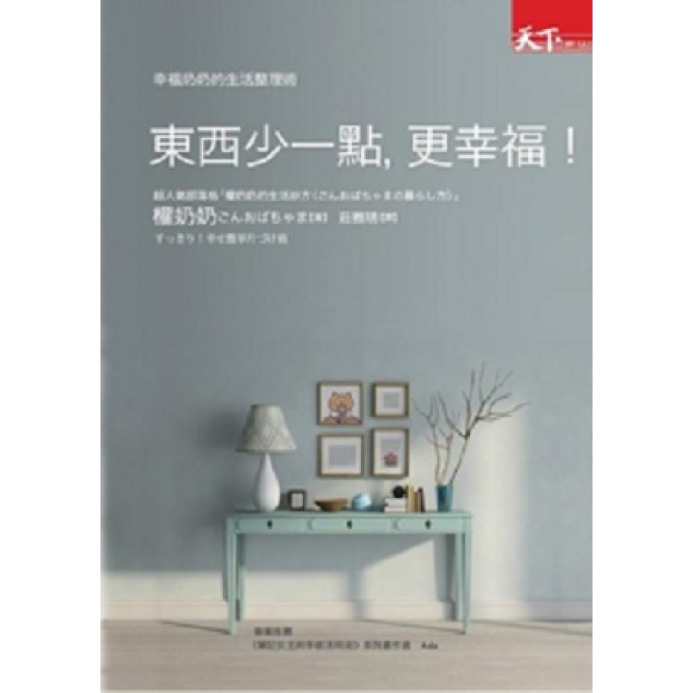 序言 大家好,我是住在關西的家庭主婦,權奶奶(???????)。 我常常在做家事時心想「有沒有更簡便的方法?」、「這樣做不是更輕鬆愉快嗎……」,透過簡單、樂在其中的方式,更能燃起做家事的熱情。 如果是自己喜歡的事,不必別人三催四請,馬上就會主動去做。但是做家事,卻是一項不情願也得做的重要工作。「既然如此,何不做得開心一點……」,因此,我在做家事時加了一些自得其樂的想法,抱著輕鬆有趣的態度把苦差事變成「喜歡」、「想做」的工作。 平時我是個全職主婦,同時也開設了部落格「權奶奶的生活妙方(????????暮??方)」,和大家分享輕鬆、簡單的整理術教程,也和讀者們組成了「整理大隊」,一起整理居家環境。過去我也曾經對整理一籌莫展,為了讓大家輕鬆愉快地動手整理,不要像自己從前那樣困擾、辛苦,因此透過部落格,分享權奶奶所累積的技巧訣竅。如果有人覺得沒辦法一個人整理、或是不知道該怎麼整理,我也希望能告訴他們,「這樣做很簡單喔」、「很輕鬆哦」。 「整理很麻煩,是件苦差事,」你是不是這樣想呢?不過在循序漸進的整理過程中,很不可思議地,整理會變成一件愉快的事。當居家環境變得整潔,心情自然會愉悅。而且是在短時間之內完成的,也很容易繼續維持下去。 動手整理的時候,每天都會有新發現。「我找得這麼辛苦,原來就在這裡啊!」、「同樣的東西,竟然買了這麼多!」就像這樣,每天都有意外的驚喜。如果三、兩下就能整理得乾乾淨淨,想當然耳,每個人都會開心吧? 本書需要各位做的,只有每天花三十分鐘動手整理而已。好好利用三十分鐘,和雜物說再見。只花三十分鐘,就有如此驚人的改變……。給一心想著「要丟」,卻又受制於「難以捨棄的現實」,對著雜物不知所措、目瞪口呆的你。想過簡樸的生活、想丟棄雜物、想要改變家裡……,如果有這樣的想法,更希望你能試試這套整理術。 推薦序 幸福的簡樸生活 Ada(林珮玲) 這一陣子,市面上有關整理術的書如雨後春筍般地出現,銷售量也非常地好,可見現代人對於物品過多造成的困擾真的很嚴重,大家都想擺脫家中過多物品的束縛,過個清爽且幸福的生活。而我自己小時候物質生活並不富裕,長大後自己工作賺錢,拼命買東西來彌補小時候物質不足造成的心靈空虛,於是家裡就漸漸堆滿了過多沒用的東西。近幾年來,經過我不斷地將不需要的物品丟棄或捐出去,慢慢地生活變得清爽,我也從中體會到擁有很多東西並不是幸福的來源,反而東西少了,才能真正感受到幸福的滋味。 我很喜歡這本《東西少一點,更幸福!》,主要是因為作者權奶奶的信念:「身無長物依舊幸福」感動了我。日本人在經歷幾次地震、海嘯等天災後,開始思考家裡的東西對自身的重要性。真正碰到災難來臨時,哪些是可以帶得走的?家中過多的物品是否阻礙了逃生?身為父母的人,該留哪些東西給孩子?直到死前,我還需要留著哪些物品?作者權奶奶以數十年的人生經驗來告訴讀者,其實放手的東西愈多,能握住的幸福也就愈多。 很多人讀了整理術的書之後,對整理家務仍然不在行,丟棄了一些物品後,又買進更多物品,除了一再地變動東西擺放的位置外,似乎沒什麼成果。對於不知從何開始整理的人,權奶奶以她整理家務的經驗和大家分享整理的步驟,把整理打掃的苦差事變成喜歡且想做的工作。權奶奶很貼心地在書中列了整理清潔檢核表,讓我們以每天30分鐘,一天只整理一項,而且只有週一到週五整理,週六、週日休息。整理的過程中,最怕家人不配合,萬一被家人弄亂後,千萬不要立刻放棄,要不斷向家人表達整理居家環境的決心,並且在這時候對小孩機會教育,培養出善於整理的孩子。 在本書中,我學到了:一個地方的整理,要分好幾回來做,第一回先淘汰掉不必要的東西,只淘汰東西但不要打掃,以免整理其他地方時,發現已整理好的這個地方有空間,於是又把別處的東西往這裡放,這樣就失去清理的意義了。根據這個方法,我把過多的書籍處理掉,而不是在清理完的客廳和走廊空間多放幾個書架。 東西少一點,更幸福。權奶奶說:「人生當中沒有一天可以偷懶不整理的,堅持就是力量。」隨時保持整理的習慣,堅持下去,我們的生活就可以永保幸福。 (本文作者為《筆記女王的手帳活用術》系列書作者)