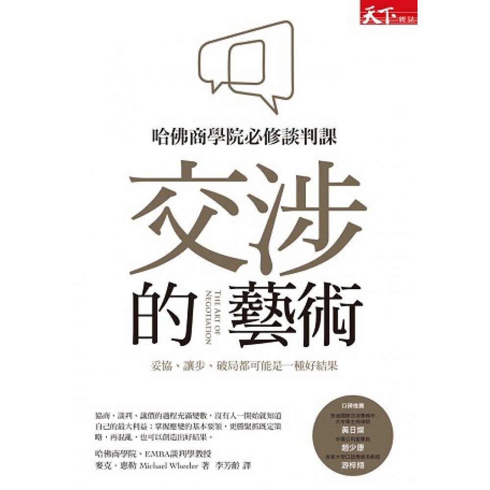 交涉談判必讀的經典 哈佛大學、麻省理工學院、塔夫斯大學等頂尖大學跨校合作的研究成果, 無數MBA、跨國公司高階主管、經理人與政府官員必學的交涉與談判技巧。 協商、談判、議價的過程充滿變數, 沒有人一開始就知道自己的最大利益; 掌握應變的基本要領,更勝緊抓既定策略, 再混亂,也可以創造出好結果。 買房子議價時,如果屋主的開價比你預期的價格還低,你該趕快拍板成交,還是該再殺價? 終於得到期望中的工作,但是,待遇卻比預期低,你該接受嗎?該如何開口談薪水? 明明已經完成交易,上司卻硬是要求你再向對方多要一點,這個時候,你該怎麼做? 推銷、殺價、說服、協商、談判,我們每個人時時都在進行各種交涉。 但是,你是不是經常不確定自己是不是讓步太快、擔心再提高條件談判就要破局,或總覺得自己沒有得到最好的條件? 享譽國際的哈佛商學院 談判教授麥克.惠勒研究發現,交涉的頂尖高手與一般人最大的差別,就在於高手掌握了在過程中隨機應變的精髓。過去不論是強調強勢,或是以雙贏為架構的思維,其實都限制了交涉、談判的可能性。 惠勒不但在哈佛大學教授MBA與EMBA的談判課,並主持橫跨哈佛、麻省理工學院和塔夫斯大學三大名校的談判研究,發展出突破性的交涉、談判新思維,幫你了解對手的喜好、技巧與底線, 進而影響對手,說服對手相信你的提議比較有價值。包括: ‧3大問題,釐清該不該上談判桌 ‧6大要點,做好交涉時的情緒準備 ‧9大原則,增加交涉談判成功機率 惠勒在書中以各種真實的案例,一一剖析面對不同對手時該採用的不同話術,帶讀者在情境中觀察對手的行為,辨別附合對手、或拒絕對手的時機。 看完這本書,每次交涉你都會更有信心,即使破局,你也清楚了解自己的最大利益所在。 名人推薦 併購教父、眾達國際法律事務所大中華主持律師 黃日燦 資深媒體人、中廣公司董事長 趙少康 「各位手上這本同樣來自哈佛的《交涉的藝術》,是極少數能在概念架構上有重大突破的。交涉談判確如作者所言,更像是一場爵士樂合奏或是即興劇共演,或更嚴肅一點像是兩架戰機在空中接戰,需要保持彈性、隨時因應、靈活調整,只有懂得應變,才能在變幻莫測的交涉談判場上成為卓越的藝術家。」---談判學教師、世新大學口語傳播系教授 游梓翔 「談判不是直線思考的行動,中間充滿曲折起伏,如果想要產生好結果的機率增加,對人際關係、資料、直覺與各種選擇就需要做好管理。惠勒在這本書中告訴我們,最優秀的交涉者就像球探一樣,持續不停地對假設進行探究和挑戰,發覺事物表面下的價值。」---波士頓紅襪隊總經理班‧謝靈頓(Ben Cherington) 「這本精闢易讀的佳作強力建議,真實世界的談判充滿複雜性與不確定性,應該臨機應變地管理。」---《哈佛談判術》(Getting to Yes)共同作者布魯斯.派頓(Bruce Patton) 「成功談判的祕訣並非只靠事前的準備與周全的計畫,還需要有靈感的即席發揮、臨機應變。截至目前為止,還沒有一本書探討如此重要、但被忽視的談判層面。所幸惠勒為談判的『爵士樂』撰寫一本見解精闢且實用的指南。本書是珍貴的談判文獻!」---《哈佛談判術》(Getting to Yes)共同作者威廉.尤瑞(William Ury) 「不論是建立夥伴關係,還是克服歧見,現今的非營利組織必須學習交涉的藝術。惠勒這本著作是令人大開眼界的指南,書中充滿資料、比喻與引人入勝的故事,教你如何運用創意與想像力,更有效地談判。」---CARE組織榮譽退休會長彼得.貝爾(Peter D. Bell) 「惠勒極具創意地匯集各個不同領域專業者的經驗啟示,如一級方程式賽車手、爵士樂家、即興劇演員,拓展我們的談判覺察力,提供實用、創新的工具,教我們如何成功地進行複雜的談判。」---微軟資深產品經理艾琳.伊根(Erin Egan) 「惠勒寫了一本新的商管經典,在這本書裡提供強而有力、適用各行各業經理人的談判策略與技巧。」---HBO家庭娛樂事業部門前任總裁亨利.麥吉(Henry McGee)