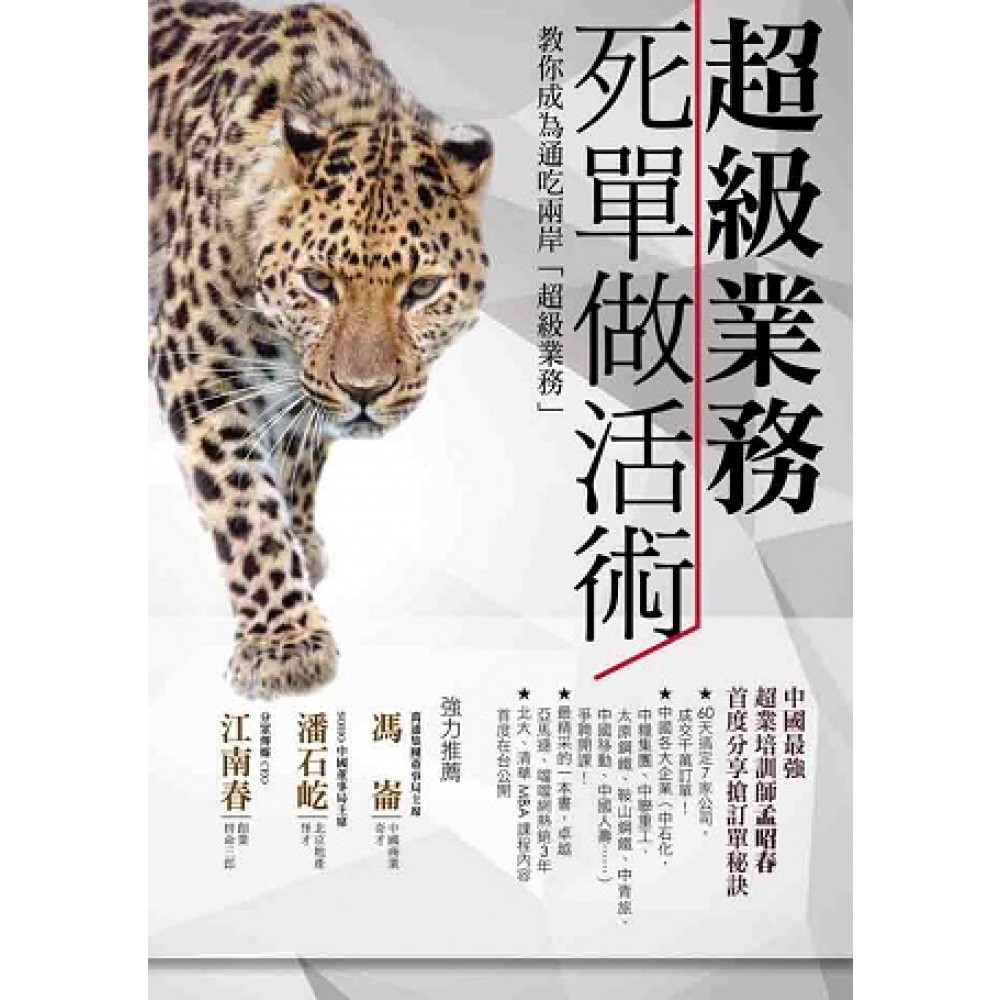 <內容簡介> 讓中國最強「超業培訓師」教你成為「超級業務」! 中國商業奇才馮崙(萬通集團董事局主席) 北京地產怪才潘石屹(SOHO中國董事局主席) 中國創業拼命三郎江南春(分眾傳媒CEO)強力推薦! 超業培訓師教你「把小單做大,死單做活」! 22年業界實戰經驗,讓你不做白工,次次成交! 中國十大企業培訓師、百萬訂單王孟昭春,首度分享搶訂單秘訣 ★ 60天搞定7家公司,成交千萬訂單! ★ 中國各大企業(中石化,中糧集團、中聯重工、太原鋼鐵、鞍山鋼鐵、中青旅、中國移動、中國人壽……)爭聘開課! ★ 最精采的一本書,卓越亞馬遜、噹噹網熱銷5年 ★《超級業務死單做活術》取材自《成交高於一切》,該書連續三年進入銷售類圖書榜前五名。 ★ 中石化、中糧集團、中聯重工、太原鋼鐵、鞍山鋼鐵、中青旅、中國移動、中國人壽等國家級企業指定為業務人員的必修教材。 ★ 北大、清華MBA課程內容首度在台公開 業務人發現了嗎?客戶開始時總是說:我不需要!我不相信!在你百般努力下,又挑三揀四,擺明:我沒有錢!我不著急!結果就算成交了,也只能薄利成交。其實客戶買不買單是內在決定的,中國銷售大師孟昭春主張從心理層面塑造圖像,讓客戶接受新的image,他自己就會搶著和你合作。於是你不但成交,還是高價成交! 在商業蓬勃發展、業務對手如狼似虎的中國,孟昭春發展出獨特的銷售技巧。學會這套核心關鍵,不管遇到什麼問題,成交單都能次次到位!不管是為公司搶單、打入公家單位標案,還是外包各種服務,都能一通百通。 本書特色 1.歸納最有效的銷售法則,讓你擁有系統化的銷售培訓訓練。 曾經在中國石化、中國工商銀行、中國移動、中國人壽保險、華碩電腦等中國大企業擔任業務培訓講師。銷售大師孟昭春化繁為簡,歸納客戶銷售心理技巧以及「死單做活、小單做大」實戰銷售法則,在競爭激烈的中國市場縱橫多年。書中的法則是你不可錯過、史上最強的系統性行銷法則。即使是初次入行,也能夠一舉領悟百萬年薪業務員成功的秘密。 2.獨家「四維成交法」行銷心理法則,打破顧客心防,成交高於一切! 「四維成交法」的行銷心理法則能瞬間贏得客戶的信任,在銷售的過程中判斷客戶的心理,瞬間抓住客戶的心,建立客戶心中的意願圖像。「四維成交法」是一套運用潛意識與客戶瞬間產生信賴關係,進而完成交易的銷售技術。運用到銷售過程中,「四維成交法」讓每位業務人員抓住成交的關鍵一秒鐘。 3. 將句號變問號,問對四類問題。創造客戶需求,訂單就是你的! 銷售不是單方面說話,而是對話。本書教你如何在客戶表達拒絕的時候,以問句開創新的可能性;如何鎖定拒絕原因,學習用理解加反問的方式,把話題拉回來。從小Yes到大Yes,讓客戶說:貴沒有關係,什麼時候可以到貨∕開始服務? 讀完本書,業務人員可以具體知道自己的銷售技巧在哪個環節存在偏差,以至與「成交」失之交臂;業務主管可以通過反思,發現銷售管理中存在的漏洞,以及企業在建立sales model方面有哪些問題。 資深業務人可以從中發現自己過去的盲點,並找到突破口,一舉跨越老鳥常有的無力感和倦怠感;新手業務員則像是找到一位優秀的導師,透過面對面傳授經驗,縮短「業餘選手」階段,提早享受業務工作承諾的高額獎金。