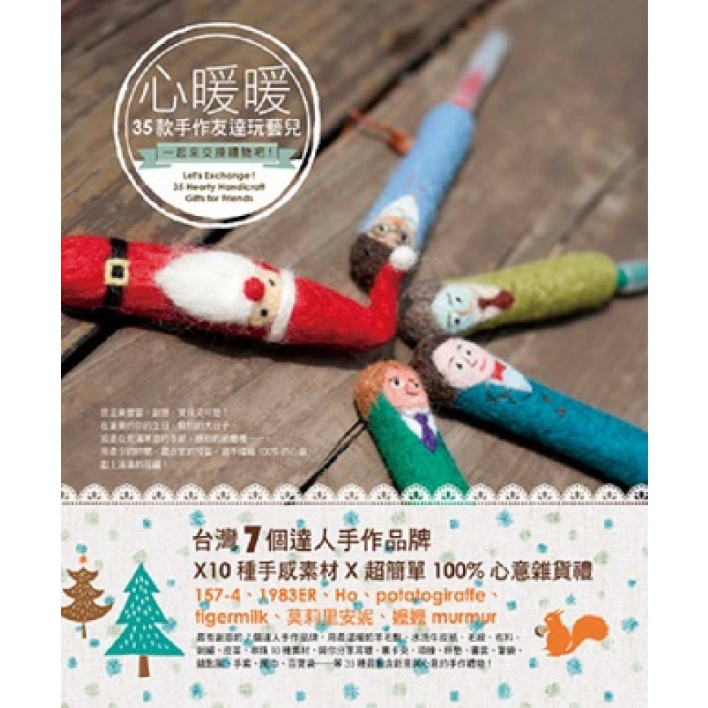 作者序 Preface∕山岳文化編輯室 不管是有著許多節慶的冬日季節,還是在身邊重要的人的生日、兩人的紀念日、親友的大日子……送上一份飽含心意的禮物,最能表達我們滿溢的關心。 但你可曾發現,在商業化快速蔓延的世界裡,不僅報章雜誌爭相報導名人求婚的鑽戒大小,各類禮品也以其品牌知名度、精緻包裝、行銷語言……等各種方式,層層堆疊出以金錢為計價,彷彿購買的鈔票金額就代表了這份禮物的價值,標價數字與心意感情就此成為正比? 也許,是時候我們該反思,送禮時我們想付出的,究竟是有形的金錢數字,還是想著對方時,想揉織在禮物中的溫暖祝福? 在這本《心暖暖35款手作友達玩藝兒,一起來交換禮物吧!》想呈現的,就是將許多你心中想表達的祝福,以親手製作的方式,添加一些創意與故事的溫度,量身打造出最適合送禮對象、最實用的禮物。 本書集合了7個創意品牌──157-4、1983ER、Ho、Modigliani、potatogiraffe、tigermilk、嬤嬤murmur,與你分享了品牌來由、手感素材故事,以及35款充滿溫暖、童趣、繽紛、時尚風格的心意雜貨禮,不只在合宜的預算與時間手作實用禮物,在創作樂趣中也感受到幸福氛圍。 現在就動手吧,一起前往手作禮物的創意旅程!