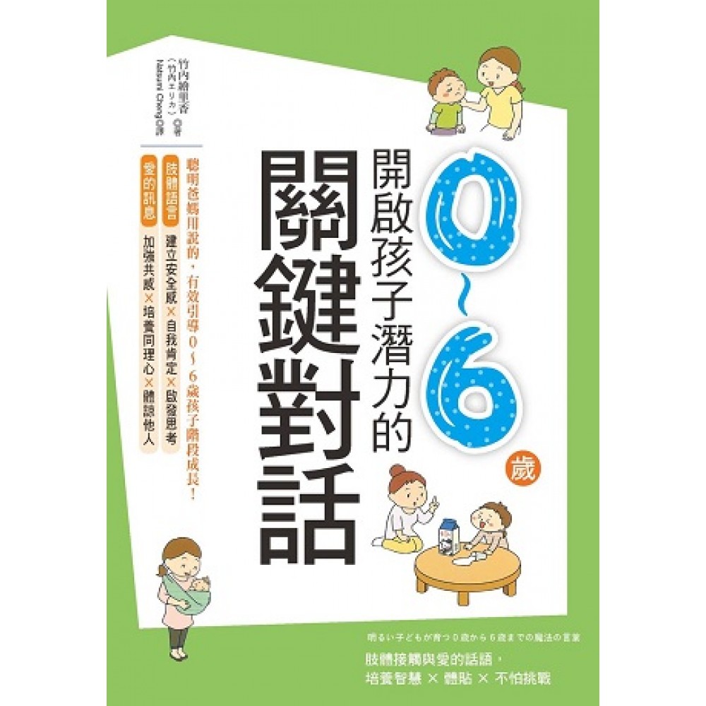 <內容簡介> 掌握關鍵對話,開發孩子無窮潛能! 父母的每句話、每個眼神及動作,都牽動孩子的未來! 專家說:6歲孩子能記住30000個詞彙! 這透露什麼訊息? 在孩子0~6歲發育黃金期, 對他說什麼話,又該怎麼說,有決定性的影響! 日本教育專家集合輔導9000名孩童的經驗, 引導父母善用肢體、眼神接觸,透過日常對話, 培育孩子聰慧、體貼、同理特質,從容面對未來各項挑戰! 面對孩子時,以下情境是否讓你覺得似曾相識:當發生問題,孩子打算自己思考時,你是不是常忍不住直接告訴他答案?當孩子打算挑戰什麼事情時,你是否曾阻止他?當孩子打算克服困難時,你是不是會自動幫他解決?當孩子覺得自己做得到時,你是不是曾把他過去的失敗再度翻出來呢?其實,只要改變與孩子對話的方式,佐以肢體接觸,就能啟動孩子的學習力,引導他找到自己的能力來源! 日本教育專家竹內老師,將「培訓法」(Coaching)融入0~6歲孩子的教養中,主張父母以充滿關愛的話語與耐心陪伴,引導孩子發展出各階段的特質,並培養自己思考、嘗試理解事情因果關係的能力,以獨立解決眼前所碰到的問題。每句話、每個動作都是日常生活中常用、自然發生的,只須巧妙搭配,運用在對的時間點,就有令人意想不到的效果! ※ 當0歲的孩子哭個不停時,緊緊抱住他說「別擔心,我一直在你身邊喔!」 → 0歲是培養孩子感性,建構自我肯定感基礎的重要時期;給他足夠的安全感,他才能放心探索世界,培養感性! ※ 當1歲的孩子一直想爬到桌子上時,不要罵他,而是說「來試試看爬樓梯吧!」 → 1歲時,孩子的身體能力有卓越發展,好奇心也逐漸旺盛;給他各種體驗與刺激,未來會更有求知欲。 ※ 當2歲的孩子想玩剪刀時,告訴他「這樣會受傷,受傷了會很痛喔!」 → 2歲時,隨著智慧的發展,孩子會因「想做的事」與「能做的事」間有落差而焦躁不安;接受他的情緒,並確切告訴他不能做的原因。 ※ 當3歲的孩子說「我做不到」時,輕拍他的肩膀,問他「一起做嗎?」 → 3歲時,孩子什麼都想自己試試看,但可能無法順利做好;在適當的時候伸手幫他,同時培育他的自立心。 ※ 當4歲的孩子亂丟玩具時,直視他的眼睛問「你什麼時候要整理?」 → 4歲時,孩子會下工夫思考如何才能順利做好,並立定計畫;培養孩子自己思考、克服問題的能力。 ※ 當5歲的孩子自己整理玩具時,摸摸他的頭,稱讚他「你整理得好乾淨,我覺得很舒服!」 → 5歲時,隨著孩子的智能發展,體貼他人之心開始發達;善用「I」(意指「我」)訊息,讓孩子知道自己的行為會影響他人,便能培養出溫柔、有同理心的特質。 ※ 當6歲的孩子幫忙收碗盤時,抱著他說「謝謝你,你幫了我很大的忙喔!」 → 6歲時,孩子想做的事越來越多;請開始培養孩子的自信心,建立他的自我肯定感,未來更能勇敢面對挑戰! 0~6歲的孩子就像海綿般,會一點一滴吸收爸媽與他的對話。想培育出聰慧、體貼、自信的孩子,就應在這段時期,將教養融入日常生活的肢體、眼神接觸與愛的話語中;你會驚訝地發現,親子關係更緊密的同時,不知不覺中就能塑造各階段孩子所需的人格特質,開發孩子更多潛能! 【本書特色】 1. 以可愛輕鬆的圖解,說明各種情境下爸媽的對應法,讓本書的理論與方法能更快速、簡單地運用在日常生活中。 2. 愛的話語、肢體接觸自然而簡單,不須特意營造溫馨氣氛,也能讓孩子感受到來自爸媽的愛。 <影片> 影片連結:http://www.youtube.com/watch?v=Xx94H5LImIg&list=UUVTMStp3dTnZ5kebP5B8pmA