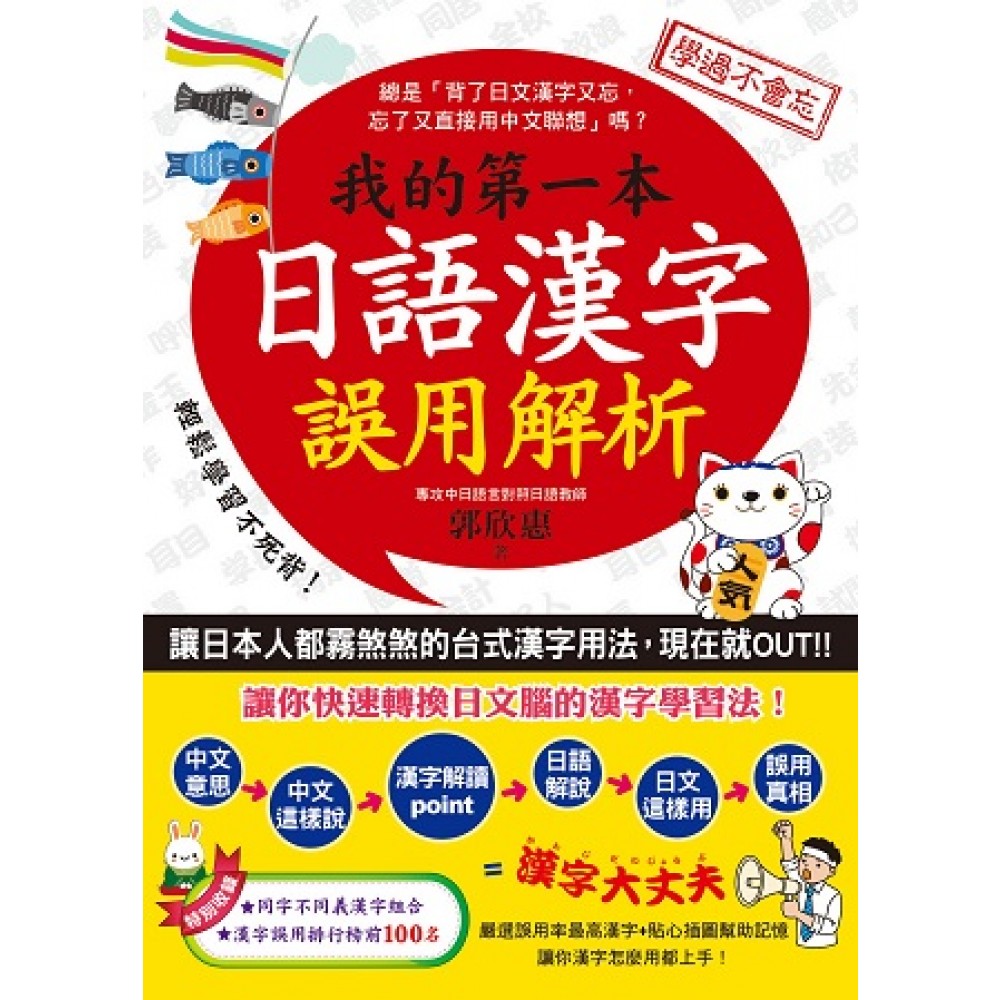 總是「背了日文漢字又忘,忘了又直接用中文聯想」嗎? 日本人:「昨天,我碰到色男(iro otoko)喔!」 台灣人:「什麼!色狼?沒事吧?」 日本人:「不是啦!日文的色男(iro otoko)是帥哥!」 用中文腦學日文漢字,有一好沒兩好。 照著字面上的意思直接翻譯,就等著糗大了! 特別收錄 ◆同字不同義漢字組合 ◆漢字誤用排行榜前100名 讓日本人都霧煞煞的台式漢字用法,現在就OUT!! 本書一次幫你整理好命中率最高的誤用漢字! ───────────────────────────────────────── 日語學習者必備的中日漢字比較解析 你想的跟他一樣嗎? 學日語不要半調子,用漢字當然也要夠道地!