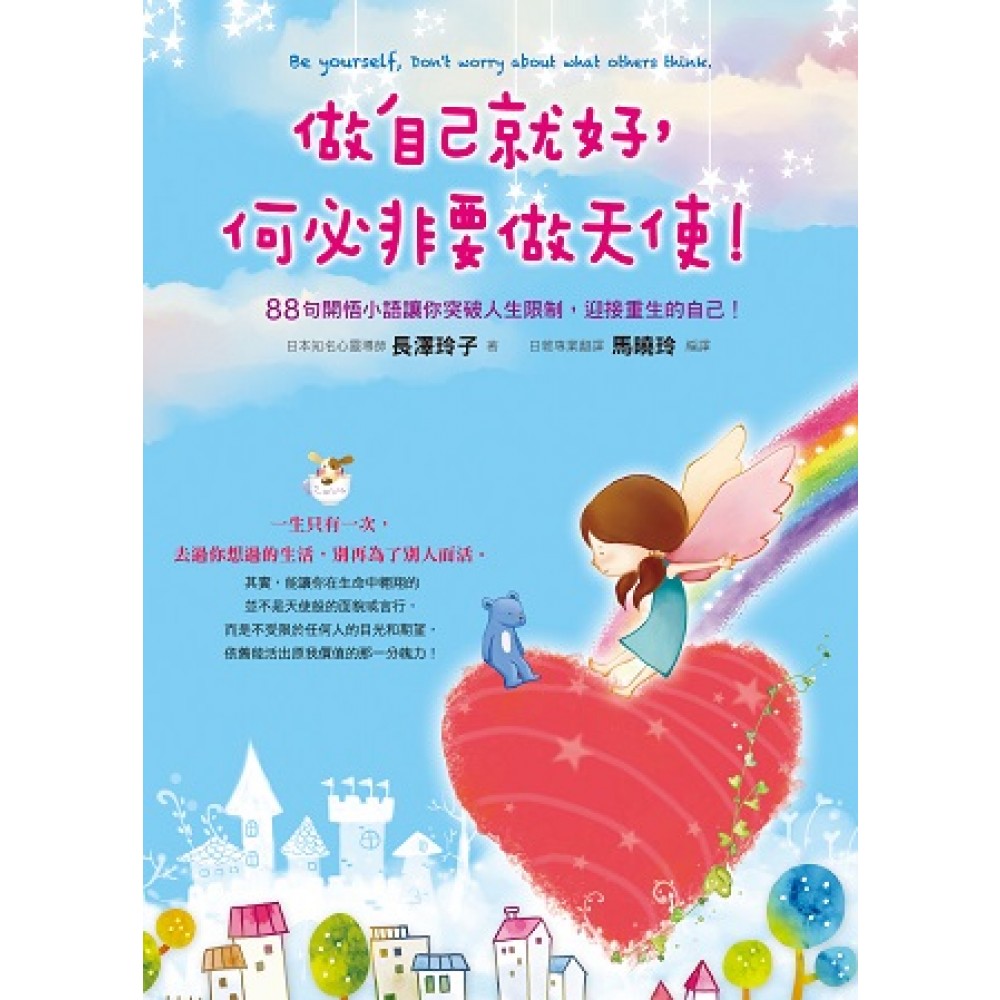 日本知名心靈導師 長澤玲子。(NAGASAWA REIKO) 1970年生於日本愛知縣,是日本知名的占星學家, 因占卜的專業而協助過許多曾在生命中迷路的人迷途知返, 過去也曾擔任過日本廣播電台「人生諮詢Call in通」的主持人。 因為聽過許多來自各階層的人生故事, 歸結生命中常出現的各種盲點、疑惑與情結, 其中每一個心念都影響著我們的過去、現在與未來, 所以將其領悟小語匯集成冊,與世人分享, 希望在你感到失落、疑惑之時, 扮演一座不多話的檯燈陪伴著你, 照亮心中的陰霾,開放緊閉的心胸, 將成長的風霜雪雨視作一時的考驗, 命運之神就會站在你這一邊。 著作 ♥《哭完就好,事情哪有這麼嚴重!》 譯者介紹 日雜專業翻譯作家 馬曉玲。 淡江大學日文系畢業,日本千葉大學深造, 熱愛藝文、電影、旅行, 現任多本流行時尚的日雜翻譯, 並長期參與多本日語教學手冊的編寫、審稿, 是一個專業與實用兼備的日文翻譯超新星。 譯作 ♥《哭完就好,事情哪有這麼嚴重!》