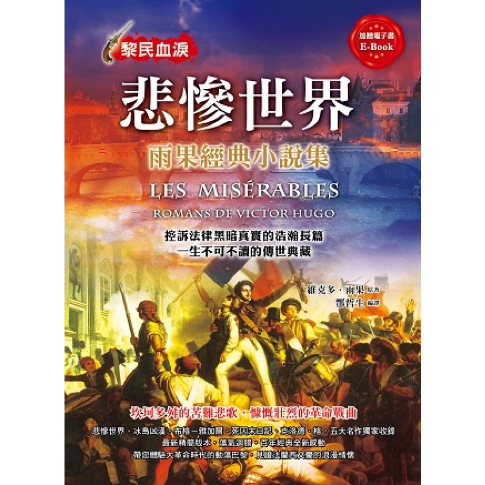 什麼!用一冊書讀完雨果,這可能嗎?! 喜歡《悲慘世界》電影或音樂劇,卻對又厚又重的原作望之卻步嗎? 喜歡雨果的小說風格,卻不知道該從哪裡拜讀其他作品嗎? 本書將《悲慘世界》大幅精簡至一冊,並獨家收錄雨果四篇中篇小說, 帶給您絕無僅有的維克多.雨果! 為您呈獻,國內唯一雨果經典小說全集! 帶您認識雨果、認識法國、認識歷史! 收錄《悲慘世界》、《冰島的凶漢》、《布格-雅加爾》、《死囚末日記》、《克洛德.格》等五部小說,帶給您最值得收藏的經典好書。書末加贈電子書E-Book,讓您閱讀無障礙,感動不間斷! ★ 出版動機 《悲慘世界》是十九世紀法國文豪維克多.雨果的社會寫實小說,亦是其代表作。書中描寫了生活在社會底層的尚萬強、芳婷、珂賽特等人屢遭法律與道德迫害的經過,故事感人肺腑,發人深省,出版150年以來風靡全球,並被改編為電視劇、音樂劇與電影。 此書共有5大部,48卷,數百小節,卷帙浩繁。雨果在書中大量涉及了法國時事、體制、文化、歷史、流行,雖包羅萬象,卻也造成篇幅冗長,中文全譯本高達百萬字,閱讀不易,也使得耐心看完這部經典的讀者少之又少,實為一大遺憾。因此,本書將《悲慘世界》大幅簡化,刪去較為過時、不必要的段落,保留文章精華,讓讀者能夠輕鬆融入故事中。 另一方面,在雨果的小說作品中,除去較知名的《悲慘世界》、《鐘樓怪人》外,尚有七部中篇小說。這些作品的創作時間橫跨雨果一生,反映了其人的思想轉變以及當代的重大事件,是認識法國文學與歷史的重要紀錄。鑑於這七部作品在國內尚未有中譯本,本社特地將其編譯,收錄於《悲慘世界:雨果經典小說集》與《鐘樓怪人:雨果經典小說集》二書中,讓讀者得以一次飽覽這名大文豪的畢生心血。 ★ 本書內容 法國浪漫主義文學的代表人物雨果.維克多的代表作《悲慘世界》,並獨家收錄雨果早期的四部中篇小說《冰島的凶漢》、《布格-雅加爾》、《死囚末日記》、《克洛德.格》。 《悲慘世界》藉著社會中下層的苦役犯、妓女、孤兒的悲慘遭遇,帶出法國大革命後社會的各種矛盾與黑暗之處;《冰島的凶漢》帶出一樁凶險的政治陰謀,並在最終讓愛情瓦解了陰謀;《布格-雅加爾》敘述了1791年海地暴動的一段不為人知的歷史;《死囚末日記》揣摩了一個死囚在人生最後階段的心路歷程;《克洛德.格》紀錄了真實發生在巴黎的一樁案件,突顯出苛政猛於虎的道理。五部作品詮釋了雨果對人道與公理的看法。全書歷經多次編譯、校對,並將篇幅龐大的原文簡化為淺顯易懂的精華版,絕對是坊間最適宜閱讀之版本。 ★ 本書特色 化繁為簡 《悲慘世界》一作包羅萬象,場景、角色繁多,中譯本字數高達100萬;有別與坊間多將此作分成三冊出版的做法,本書將作品適度縮減,在不失原著精神的前提下,刪去與故事主軸較不相干的部份,讓讀者能以僅僅一冊的篇幅,縱覽原著中的經典橋段與故事精華。 獨家收錄 本書除收錄《悲慘世界》外,另加入雨果的四部中篇小說,分別為《冰島的凶漢》、《布格-雅加爾》、《死囚末日記》、《克洛德.格》;此四部小說在台灣尚未見於市面,卻是全面認識作者人道精神與創作風格的重要材料。本書獨家收錄,帶給您最完整的雨果! 超值加贈 本書包含《悲慘世界》在內的五部小說,字數高達50萬,是坊間唯一;書末更附贈電子書光碟,收錄全文PDF檔,饒富收藏價值,讓您隨時隨地置身閱讀天地,感受可歌可泣的奮鬥故事!誰說經典只能是一本的厚實字典呢?