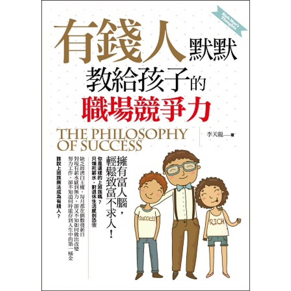 【本書綱要】 ■擁有富人腦,輕鬆致富不求人! 你是這樣的上班族嗎? 只領死薪水,對退休生活感到恐懼 缺乏經濟自主權,每月都在倒數發薪日 對現有薪水感到無力,卻又不知如何做出改變 努力工作,卻不知道何時能存到人生中的第一桶金 誰說上班族無法成為有錢人? 追求卓越,成功就自然而來 上班族分為兩種人,一種是為錢生活,一種是為目標生活,剛進入職場的新鮮人,面臨最大的問題,就是要快速適應學校沒有教的職場應對和溝通技巧,此書即是以年輕人的角度出發,讓讀者了解成功的關鍵就在於不斷追求卓越。 ■先窮一下子,再富一輩子! 誰說上班族不能投資賺大錢?有錢人教孩子只要擁有正確的理財觀和消費習慣,建立自我財務規劃,用富人的腦袋做投資,你也可以成為有錢人,愈花愈有錢! ■「改變你一生」的投資技巧。愈早行動,愈早受益。你──還在等什麼? 想賺大錢的上班族注意了,現在你不需要再花大把時間學習投資賺錢!本書精選「改變你一生」的有錢人致富技巧,讓你不再痴痴等待發薪日,自己就能靠投資賺大錢。 ■要成為一個有「錢景」的上班族,「眼力、心力、行動力」缺一不可 有了知識,我們就能得到財富;有了財富,我們就能得到自由!精準的「眼力」,專注的「心力」,穩健的「行動力」,擁有富人腦缺一不可的3大關鍵,伴隨人脈與金流,讓財富向你滾滾而來!投資理財停、看、聽,就算月領22K,也能晉身有錢人行列!