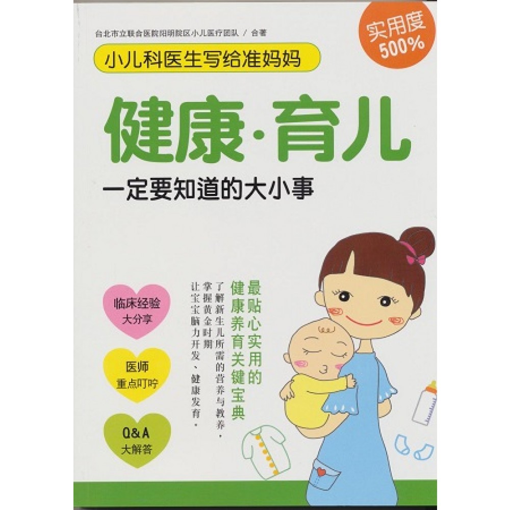 §推荐序 这是一本贴近读者的实用好书 医生每天的生活是相当忙碌的,面对来来往往的病患和紧急情况,常常忙得连三餐饭都无法正常吃饭,尤其是周遭每每发生的生、老、病、死,更是令人体会到生活和人生充满了意外和无常。 不过我平时就一直相当鼓励我们联合医院的医师和护士们,除了要常常自我充实之外,也可以经常发表期刊、院刊或是书籍、文章……等,因为每个临床病患的症状可能都不一样,主治医师可能碰到的问题也不同,借着文字的传递不但可以互相交流经验,也可以借此分享给读者,尤其是现代人虽然教育程度普遍较高,但是对于医疗的常识却还是略显不足,对于急症或是突如其来的意外,往往不知道该如何紧急处理,而延误了急救的时间。 看到阳明院区的小儿科主治医师和营养主任、护理长等,能集合众人的临床经验和专业学识,出版这样一本『小儿科医师写给准妈妈,健康育儿一定要知道的大小事』,我感到相当开心,阅读过内容之后,更觉得这本书不但内容丰富,加入了医师们的经验和学识之外,和学术论文不同的是,它用浅显易懂的方式来表达,让读者更容易理解,这一点相当重要,彷佛把读者当成朋友般的殷殷叮咛,更是相当体贴读者。 我个人感到相当与有荣焉,在此为医师们作推荐:希望这是一本可以伴所有父母一起快乐陪伴孩子诞生、成长的好书! ──台北市立联合医院总院长 彭瑞鹏 §作者序 体贴辛劳父母的育儿笔记书 行医27年,每每面对焦急的家长带着家中宝贝前来就医,总想给予完整而正确的专业育儿知识,尤其是上班族的双薪家庭,在少子化的社会,又不得不将家中幼儿于未满2~3岁前就送进托儿所或幼儿园,而在团体生活中,幼儿特别容易互相传染流行性疾病如感冒、结膜炎、肠胃炎等,只要小儿有一点点不舒服,家长就会特别紧张担心,年轻父母也十分关心幼儿发育与生长过程中会出现的问题。 面对小朋友和一般成人门诊不太一样,小孩子对医生总是有很多恐惧,害怕吃药、害怕打针,而且孩子的表达能力也没有大人那么完整,所以要从小朋友口中问出病症,需要无比的耐心,而大部分的家长都会问的巨细靡遗,医师们虽然也相当尽力为家长们解答、消除他们的疑虑,可是门诊的患者实在太多了,总是无法从头到尾详细的解释细节,往往看诊不到10分钟就必须请家长出去等候了,但事实上,宝宝很多的小毛病只要在家细心护理就可以得到解决,所以一直以来,我们医院的医师和护理长等,都相当希望能有一本以实例医疗角度来讨论育儿问题的书籍,方便家长能在家查询、解惑,所以当宗蓉主任提出台湾广厦出版社有意愿为民众们出版这样的书籍时,我们当然乐于共襄盛举。 本书主要是针对新生儿容易遇到的问题,像是喂奶、洗澡、换尿布和生病的护理、急症处理、副食品及营养补充……等,针对家长比较容易碰到的问题加以解说,集结了我们台北市立联合医院阳明院区的小儿科医师、营养科及护理长在实际医院护理的经验和研究,不管是对新手父母还是有任何疑虑的父母来说,都是相当实用的一本书。当然内容如有不足或不尽理想的地方,还请各位先进和读者不吝指教。 ──台北市立联合医院阳明院区院长 杨文理