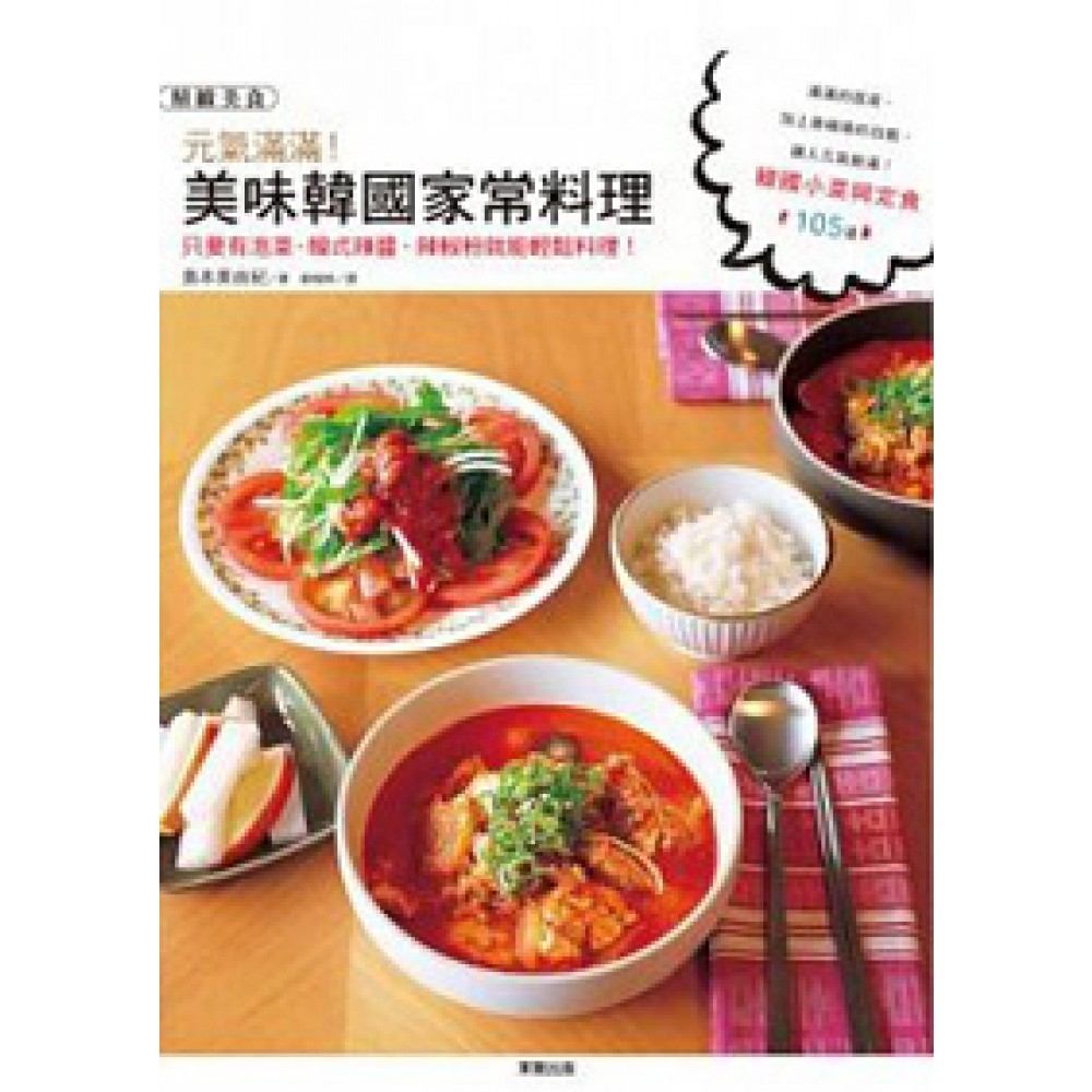 秉持著健康來自每日飲食的觀念, 加入豐盛的蔬菜與辛香料, 讓人飽食之後就能元氣滿滿! 本書介紹了105道韓國定食與小菜,內容單元分為「Chapter 01:3道菜,15分鐘!韓式自家定食」、「Chapter 02:讓白飯扒個不停! 分量滿滿菜餚」、「Chapter 03:豐盛蔬菜,快速上桌!」、「Chapter 04:眾人同樂! 宴客料理」、「小特集」等單元,讓讀者可以依照自己的需求,輕鬆又方便地參考本書做出美味又營養的韓國料理,不用特意前往韓國餐館,就可以品嚐到道地的韓流好滋味