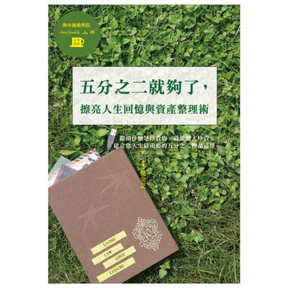 一、何謂「2/5原則? 這是一本有別於一般講述「收納?的書!本書作者延金芝提到的「2/5原則?,是一種簡易的減量目標,幫助你持續地去蕪存菁盡力讓身邊的物品減量到只剩目前的2/5,讓你覺得更清爽、簡單,生活得更有目標。2/5原則不單局限在實體空間的物品減量,更可以泛指人生階段的整頓,聚焦在有價值、有意義、有貢獻的生活項目。 她參酌馬斯洛的「五大需求理論」轉換成「4L的收納觀念」,Living、Law、Love、Leisure。從與個人息息相關的健康、飲食及生活的重點管理,到法律、財務與權益、有情感的照片、書信卡片整理,最後包含圖書、音樂、電影收納,全面性的囊括了各個面向。準備迎接人生下半場的你,需要利用本書列出屬於你自己的2/5! 每個年齡層都需要朝向2/5的目標邁進 40歲的你,2/5對你的意義: 在這人生最穩定的黃金40歲階段,家庭與事業有成,該去思考現階段的重點是什麼?從4個L的優先順序檢視你的2/5願景,在身體狀況良好階段,開始從容的為你的物品進行減量、增加必備物品,分門別類建檔以及陸續轉換成電子檔,要在此階段逐步進行。 50歲的你,2/5對你的意義: 在這階段中,越來越多人面臨父母去世、子女獨立成家、離婚或是自願單身等重大的生活改變,對後半段人生會有更清楚的領悟。通常在Living(健康和生活)和Law(法律、財務與權益)的兩大範疇,能夠更務實,大量減少不必要的花俏物品,且有明確的風險應變方案。在Love(情感與人際關係)方面會更聚焦在重要的人物。 60歲的你,2/5對你的意義: 大家紛紛進入退休生活,生活的重心轉移到興趣嗜好。比較適合的興趣嗜好是著重在有益身心的活動,盡量避免有儲存和收集的行為。因為Leisure(興趣嗜好)的物品收納,在這個階段來到重要的分水嶺,需要進行嚴厲的去蕪存菁,因為此後我們的精力慢慢走下坡,減量的壓力會隨著時間日益增加。 70歲的你,2/5對你的意義: 希望這時候我們可以享受2/5清爽簡潔的生活,吃得健康,住得舒服,不用擔心財務窘迫,沒有感情的遺憾,不必煩惱自己的收藏後繼無人。透過定期檢視遺囑,確保未來八、九十歲,隨時能完美地移交身後事,按照自己的心願掌握財產處理和最後的醫療方式。 二、如何擦亮人生回憶與資產整理術 -帶著珍貴回憶的收藏:個人獨特的收藏品、朋友贈送的有意義紀念品、具有回憶的書信卡片、代表著你人生過程的紙本相片等等,經過幾十年的累積與保存,若是沒有將它們好好的整理,這些對你有意義的物品,可能都永遠塵封在箱子中沒有展現的機會。書中,延金芝將這些有收藏價值的物品,分門別類教你如何進行有系統的整理。進入數位化的時代,照片需要以數位化備份照片;照片、書信卡片可透過相本及資料夾的擺放,將這些珍貴的回憶猶如策展般的一一展現,與好友、家庭成員分享,溫暖自己與朋友的心;收藏品的擺設加上文字記錄等等,藉此重新擦亮珍藏品的價值。 -積極面對人生下半場:辛苦了人生上半場後,總希望能夠更掌握接下來的下半場,並且活得更精采。延金芝教你針對人生重要事項,需要開始列重點清單,並開始著手進行,不致到老才慌亂。例如:作好財務規畫,妥善保管財務相關的文件:銀行帳戶、密碼、印鑑、月收支表等;緊急備用金至少準備3~6個月;勞保老年年金給付及勞工退休金,是否足夠你退休後生活;不忌諱的立遺囑,及預先選擇自己希望的臨終醫療方式,這些需要每3~5年重新檢視更新,讓家人尊重並依照你的決定進行,也幫助你更安心的面對未來生活。 -收納策略是「重點管理」:本書中,延金芝不斷提到「重點管理?,所謂「重點管理?就是:在重點的範圍內就好好處理,不是重點的就盡量清理。重點管理的面向包含了:1.健康和生活的重點管理,在健康重點管理中,提到身體的四大需要:飲食、清潔、睡眠和活動。2.「高價值和耐用的物品?重點管理,該收好各類保證書及家電的管理與掌握。3.最重要且是一般人常忽略的重點管理:「急難救助?。 三、中年人生應該建立的整理好習慣 ? 這些東西在未來一年裡,你會用得上嗎?只需回答Yes或No,就能決定去留。 ? 一年以上沒使用的東西就該丟掉。 ? 設定收納區塊,每次只花0.5~1小時整理。不花太多的時間與精力,才不會造成身體與心理的負擔。 ? 善用「標籤機」養成收納分類的好習慣。 ? 空間收納原則:清理家具外的「違章?建築、儲櫃不擺放前後兩層、桌面上物品只能占40%。 ? 對你較重要的且年代較久遠的物品需優先整理;不易保存的紙本相片及過時的影片檔案格式,有轉檔技術問題,需優先整理。 ? 物品減量應朝向2/5的目標邁進。 ? 照片、圖書、音樂、電影收藏,以網路雲端進行備份及清冊管理。 ? 提早思考身後最想留下的是什麼,為重要物品安排歸宿。 四、雲端備份與建立清冊Step by Step圖解 進入網路時代,傳統照片可以轉成電子檔備份在雲端,影片、圖書、音樂等收藏,亦可透過雲端系統建立館藏清冊。網頁操作圖解step by step,將你的珍貴收藏更有價值。