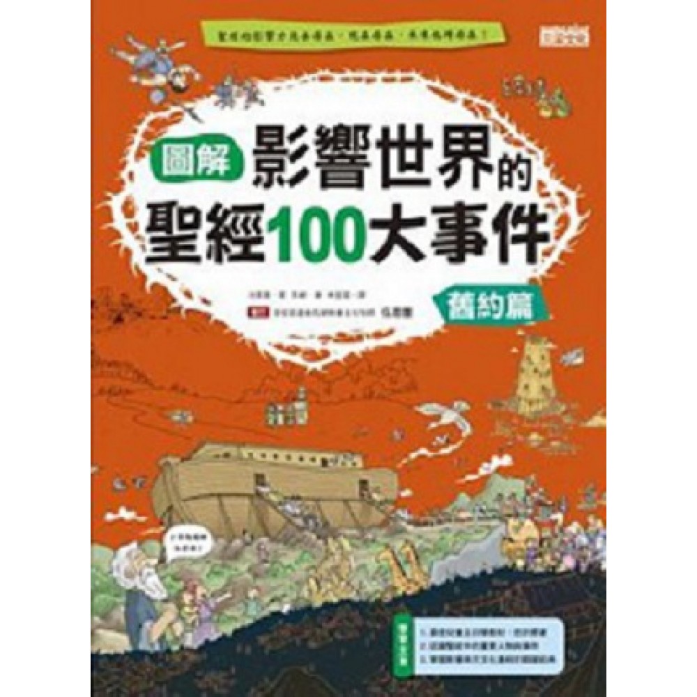 【作者序】 這是一本與世界息息相關的經典, 也是一本影響了全人類的故事書! 聖經是基督教的根本,記錄了許多故事和教導。基督徒相信上帝創造且管理宇宙萬物,也相信上帝的愛子~耶穌,為了讓人類的罪得赦免,而以人的形象來到這個世界。 聖經記載著上帝和耶穌的事跡,以及他們的言語、教導。除此之外,聖經裡面還有關於信靠上帝,並且遵行、傳福音的人的故事。 聖經總共有六十六卷書,記載了從神創造世界和人類開始,到2000年前的故事。其中,舊約有三十九卷書,記錄了耶穌來到這個世界之前的故事;新約則有二十七卷書,記載了耶穌來到這世界之後的故事。舊約記載的時間約是西元前1500年,到西元前200年;新約記載的時間,則約是西元1年,到西元後約100年的故事。記錄聖經的人,分別為傳講上帝話語的以色列領袖和先知,以及遵行耶穌教導的門徒們。 聖經記錄了以色列民族的歷史、有益處的教誨、美麗的詩歌、感人的愛情故事,以及有趣的英雄冒險故事。聖經裡的故事並不單只是很久以前的故事,它還有一股驚人的力量,能夠隨時帶給人智慧、勇氣與希望。因此,聖經成為歷史上最暢銷的書,也是最多人閱讀過的書。整個西方世界的歷史、文學、藝術、思潮、科學,甚至是如何教養孩子、如何塑造品格等,都與聖經有密切的關係。聖經的人物與故事影響了整個西方世界,也因此影響了全人類,因此不只基督徒閱讀聖經,許多非基督徒也透過聖經,尋找人生的方向與養分、進入學術的探索或與歷代的思想家、文學家、藝術家對話。可以說,聖經是一本廣受大家喜愛的書。 閱讀聖經時,有時會因為久遠的歷史與複雜的人物關係而感到難以理解。所以,我們採取新的編輯方法,讓孩子能夠以簡單又有趣的方式來瞭解聖經。我們擷取並整理了聖經裡的重要內容,試著把它變成一本有趣又好看的圖畫故事書。我們把聖經裡最重要的大事件寫成趣味盎然的故事,並且畫成一張一張的圖畫。希望小朋友們讀完這本書後,不僅能熟悉聖經裡的故事,也能感受到上帝和耶穌對他們的愛。 2011年 夏天 池昊晉、李赫 審訂推薦序 對教會來說,它是一本很棒的兒童聖經教導讀物, 對非基督徒的讀者,它是可以輕鬆瞭解聖經的書! ──浸信宣道會西湖教會主任牧師 伍恩豐 第一次接觸三采出版的書是因為兒子的關係,他從很小的時候就喜歡到誠品去,我發現他被一系列的書吸引著,看了以後還不滿足,吵著我要買回家讓他收藏。 我只問他一件事:「買書回家你會看嗎?」 「當然會!」他肯定的回答。 當我知道他要的書後,我明白了,他當然會喜歡啊!漫畫書有那個孩子不喜歡呢?一開始刻板的印象出現在我的腦海裡,「漫畫」會不會太簡略而失真啊?而我又不希望他只迷上漫畫類的書籍。在極力想說服他的同時,他把書拿給我看,而且說了許多的理由,結果我們不但買了,我自己也成了讀者! 從兒子喜歡的知識漫畫書系列,我知道三采在尋書與出版上費了許多的心思,我自己也從中得著了一些新知。 這次,有機會成為三采出版《圖解影響世界的聖經100件大事》的審訂者,更深入了解到圖文書籍的穿透力,由圖引入文,再由文回到圖,不但文字,連圖畫的內容也需要講究。 對於孩童,圖文書籍占有更重要的責任,因為內容不只是文字,還要留心所呈現的圖畫。單單以文字為主的故事類書籍,能讓讀者在腦海中自由的發揮影像創造,不過大部分的人卻也無法把腦中的影像實體化。圖文書一方面透過文字來表達,另一面以圖畫來為讀者建造圖像;反過來,也以圖畫來引導讀者進入文字的敘述中,雖然這樣可能也限定了孩童的想像力,造成刻板的圖像背景。因此,圖文的比例、圖畫的表現與內容的分配,就顯得格外的吃重。一方面不能扼殺孩子的想像力,一方面又要能正確引導孩子影像的創造力,在正確內容的基礎上與圖畫回應的表現上,這本書真實的發揮了應有的責任! 當我接到這本書時,也格外的留意這方面的呈現。我看見的是,不但內容不因為是圖文書而含糊簡略,或是為了效果而加油添醋。更難得的是,忠實的把聖經中許多重要的事件與背景,都以批註的方式來表達。如此,文中有文,圖中有內涵,我不得不說這是一本好書。 另外,還有一點,一間非宗教性的出版社能以中性的態度來出版似乎會沾上宗教色彩的書,是非常有勇氣的。不能因為可能對宗教認知的不清,而出版讓跟聖經有關係的教會界認為不倫不類的出版品,另一面,又不能背上傳教之名的疑慮,導致兩面都得罪了! 在這樣的兩難之下,這本書的出版更讓人為之驚艷。它忠實了表達出聖經的內容與骨幹,可以說是一本很棒的兒童聖經教導讀物,為教會界多預備了一本兒童聖經教科書。而且,也讓雖然不是基督徒的讀者,可以透過這本清晰易讀的書,來了解聖經的概貌,還能從其中來初步了解一本全世界最暢銷的書,而且是翻譯版本最多的書。 有人說,聖經再過不久就要作古了,但是說這句話的人如今已經作古了。當時他說這句話的地方,後來竟成為印製聖經的印刷廠。三采出版了這本影響世界的聖經100件大事,就等著你來看,它是怎麼影響世界的!