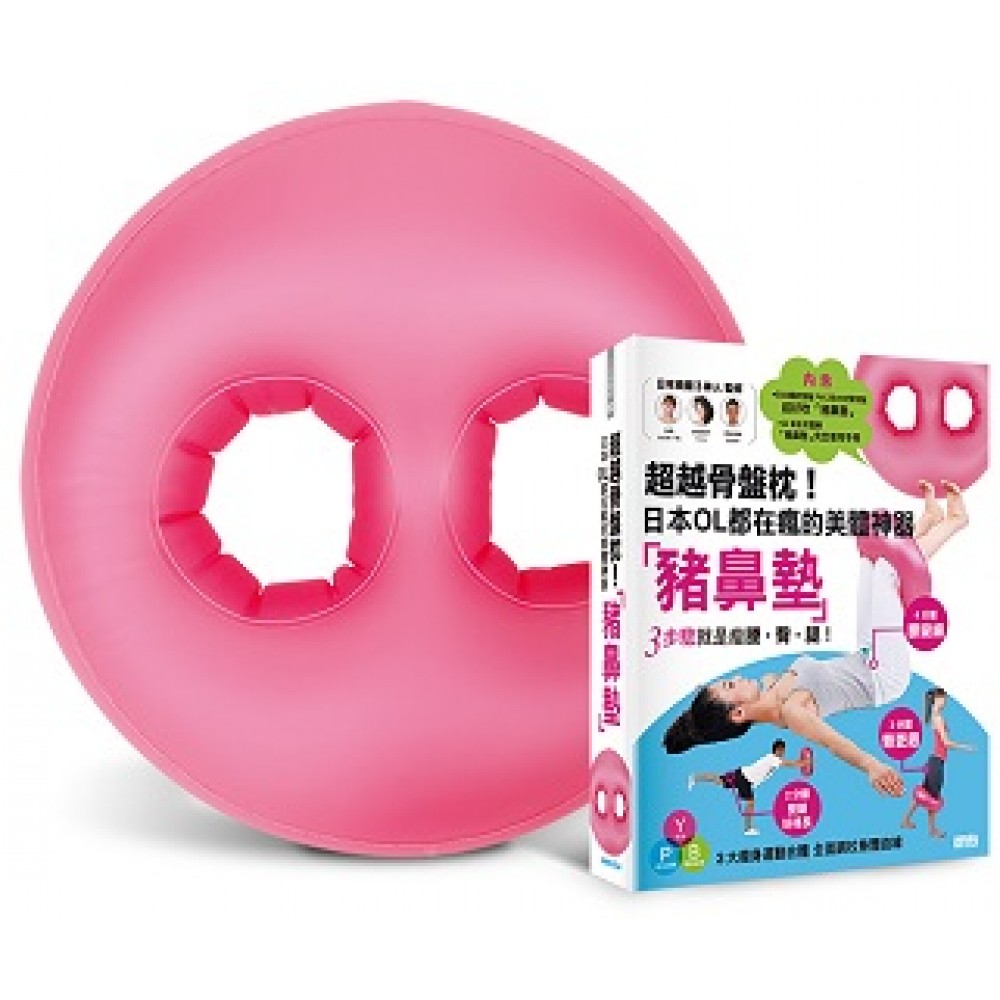 內含 .日本獨家授權PVC防水材質特製超好吹氣「豬鼻墊」(尺寸:42x43x11cm,符合歐盟EN71-3環保檢測標準) .32頁全彩圖解「豬鼻墊」完全使用手冊 日本OL界最紅的美體神器「豬鼻墊」,與3大瘦身運動˙瑜伽+彼拉提斯+體能鍛鍊合體3步驟就是瘦腰.臀.腿!! 30個豬鼻墊運動 一個POSE,伸展、瘦身更紓壓! 4分鐘腰變細 3分鐘臀更翹 2分鐘雙腿好修長 給你3種瘦身運動,全面調校完美體型!運動白癡、肢體不協調者也不怕!! 瑜伽 Point1 以勝利呼吸法讓腹部周圍變舒暢 Point2 消除疲勞,全身更輕鬆更自在 Point3 穩定精神、撫平情緒 彼拉提斯 Point1 利用合上肋骨的呼吸方式,強化內臟器官 Point2 提升專注力,鍛鍊身、心、腦 Point3 注意身體重心,塑造平衡的體態 體能鍛鍊 Point1 正確的姿勢 Point2 柔軟骨盆,解決所有的煩惱 Point3 強化骨盆肌力,打造不胖的體質 商品簡介 日本原創獨家設計監修 「豬鼻墊」 使用防水PVC材質,超好吹氣(尺寸:42 x43 x11cm,符合歐盟EN71-3環保檢測標準) 美體新神器「豬鼻墊」的5大特色 特點1 充滿彈性 絕佳的緩衝性 高度的緩衝性能,搭配柔軟觸感,運動時能與你的身體緊緊服貼。 特點2 豬鼻洞設計,幫助你輕鬆運動 將手和腳穿過中間的洞洞,可以更輕鬆地完成伸展運動 特點3 體積輕巧,攜帶方便 輕盈的防水PVC材質,方便隨時帶著走、隨時使用。 特點4 不占空間方便摺疊好收納 不使用的時候,可以把空氣放掉、摺起收納,徹底節省空間。 特點5 讓人心情愉悅的粉紅色 幸福的粉紅色,給人溫柔的呵護感覺,心情舒暢。 本書特色 1.豬鼻墊加上使用說明書,商品到手,馬上做馬上瘦。 2.日本美體3神人共同監修,最有效、最簡單的美體瘦身法就讓專家教你。 3.全書收錄30個豬鼻墊運動、4組組合動作,瘦身、紓壓、伸展一次到位。 4.書末收錄4周美體計畫,每天做每天記錄,隨時掌握體態變化。