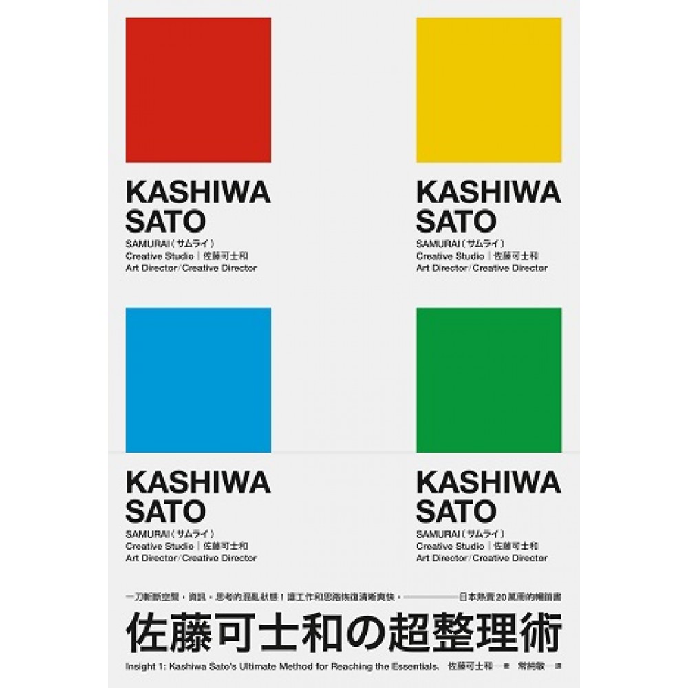 前言 第一章 解決問題的「超級」整理術 好工作少不了整理術 藝術指導=醫生 關鍵在於整理對方的思緒 不掌握本質,就無法創造好的結果 整理術能夠扭轉工作和生活! 第二章 一切從整理開始 你是否尚未認清問題本質就急於處理 隨時對於這個複雜的社會抱持危機感 表面應付無法解決問題 按部就班學好整理術 依照「掌握狀況→導入立場→設定課題」的順序進行 問診時不可輕忽微妙差異 導入立場,窮究問題本質 找出課題,問題就已解決一半 將課題視為想要征服的山,找出正確路徑 從空間到思考,目標是三階段整理 第三章 第一階段:「空間」整理術――設定優先排序 空間整理的目的,在於創造舒適的工作環境 徹底整理,迴避風險 透過身體力行,感受整理成效 從隨身公事包的整理開始 公事包裡的東西真的都是必需品嗎 促進輕量化的手機進化 「空手」帶來出乎意料的解放感 「捨棄」的勇氣將雕琢價值觀 捨棄是與「不安」的戰鬥 若要捨棄,必須設定優先排序 捨棄也是與「暫且」的戰鬥 創造最佳的辦公桌環境 一旦決定物品的固定位置,就變得容易掌握 舉棋不定時,請比較功能類似的物品 文件或資料只保留最終版本 櫃子的多餘空間可充當臨時避難所 名片的整理分類方法 虛擬空間也是簡單至上 檔案的命名最為重要 電腦內也要規畫自由空間 利用「框架」提升辦公環境的舒適度 援用虛擬空間的辦公室空間整理術 一旦決定「外框」,就能掌握整體印象 親身學習辨別重要事物 第四章 第二階段:「資訊」整理術――導入獨自立場 對資訊提出立場,窮究問題本質 導入立場的最終目標是導出遠景 在對方心中建構形象 找出理想的「遠景」 一旦確定立場,就能看見遠景 如何尋找個人立場 探索本質的重點是退一步觀察 拋開自以為是,視野更加開闊 轉換立場終於導出:明治學院大學的遠景 改變想法,缺點也能變優點 以識別標誌表現遠景精髓 宛如解讀暗號般組成:國立新美術館標誌 濛昧不清的狀況難以找出強力立場 以「全新」的立場將一切轉為優勢 在表現階段確實琢磨遠景 一旦迷惑,就試著想像具體場景 隨時保持尋找遠景的積極態度 第五章 第三階段:「思考」整理術――將思緒資訊化 將思緒資訊化,提升溝通精確度 瞭解自己難如登天 一切要從將思緒置換成語言開始 提出假說,確認對方想法 佛洛伊德的心理療法「無意識的意識化」 自我無意識的意識化:DoCoMo手機 產品完成後,摸索概念的語言化 向自己提出假說,進而發現概念 找出與自己的接點:地方產業的品牌推廣 沒有真實感,就無法產生問題意識 唯有視如己出,才能產生真實感 琢磨擦亮本質:UNIQLO的「應有面貌」 問診間發現UNIQLO的本質 標誌設計加入日本品牌的氣概 深入無意識:FAST RETAILING的企業識別 如何導出腦海裡的遠景 提出假說,探索客戶的思緒 以大紅標誌表現「革新」立場 設計全新的T恤選購法:UI 從T恤的媒體性所產生的商業模式 世界第一T恤品牌的系統設計 利用保特瓶將問題點扭轉為附加價值 整理思緒的成果:全新醫院形象 探究現今醫療環境的問題本質 概念是「復健休閒中心」 第六章 整理術開啟新靈感之門 最重要的關鍵是找出立場 只要抱持目的,技巧就能活起來 答案一定就在眼前! 後記